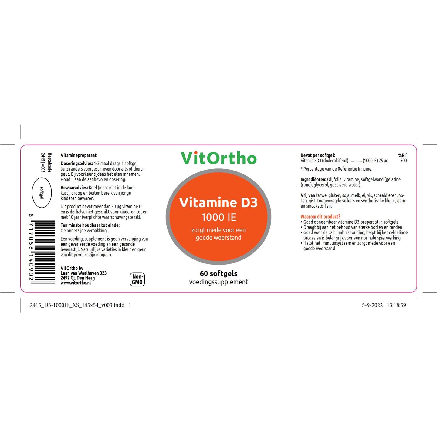 VitOrtho Vitamine D3 1000 IE 60 softgels