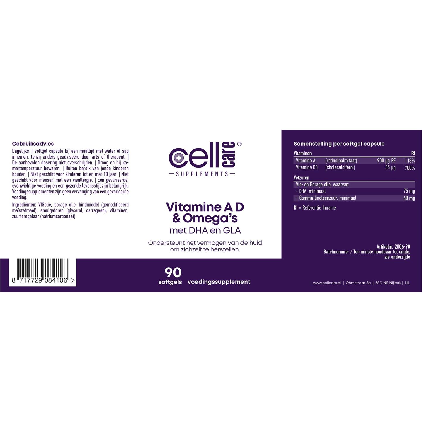 CellCare Vitamine A D & Omega's 90 softgels