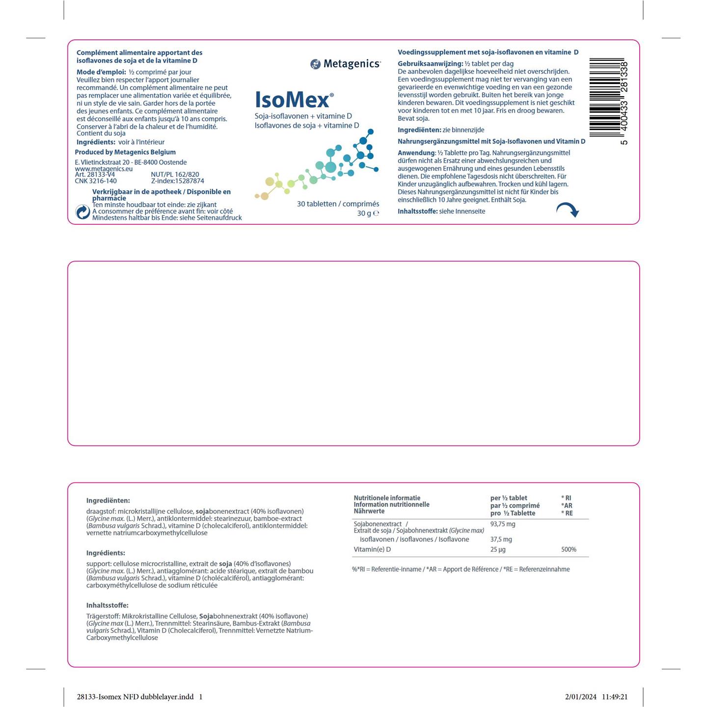 Draagstof (Microkristallijne cellulose), Sojabonenextract (Glycine max. (L.) Merr.) (Soja), Antiklontermiddel (Stearinezuur), Bamboe-extract (Bambusa vulgaris Schrad.), Vitamine D (cholecalciferol), Antiklontermiddel (Vernette natriumcarboxymethylcellulose).