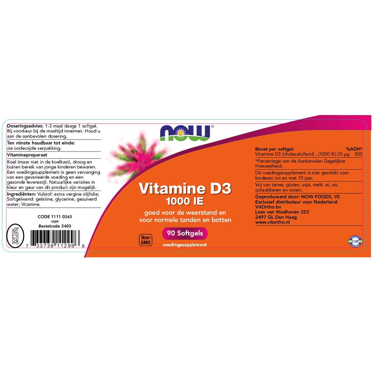 NOW Vitamine D3 1000 IE 90 softgels