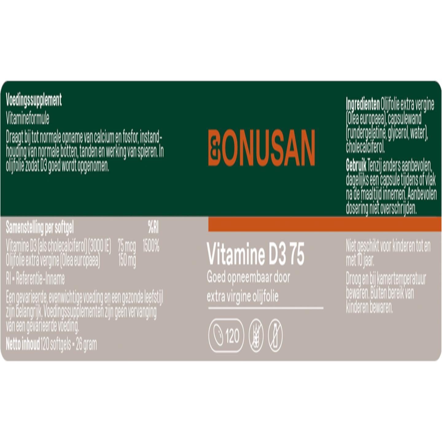 Vulstof (Extra vierge olijfolie), Capsule (Gelatine, Glycerine, Water), Vitamine D3 (cholecalciferol).