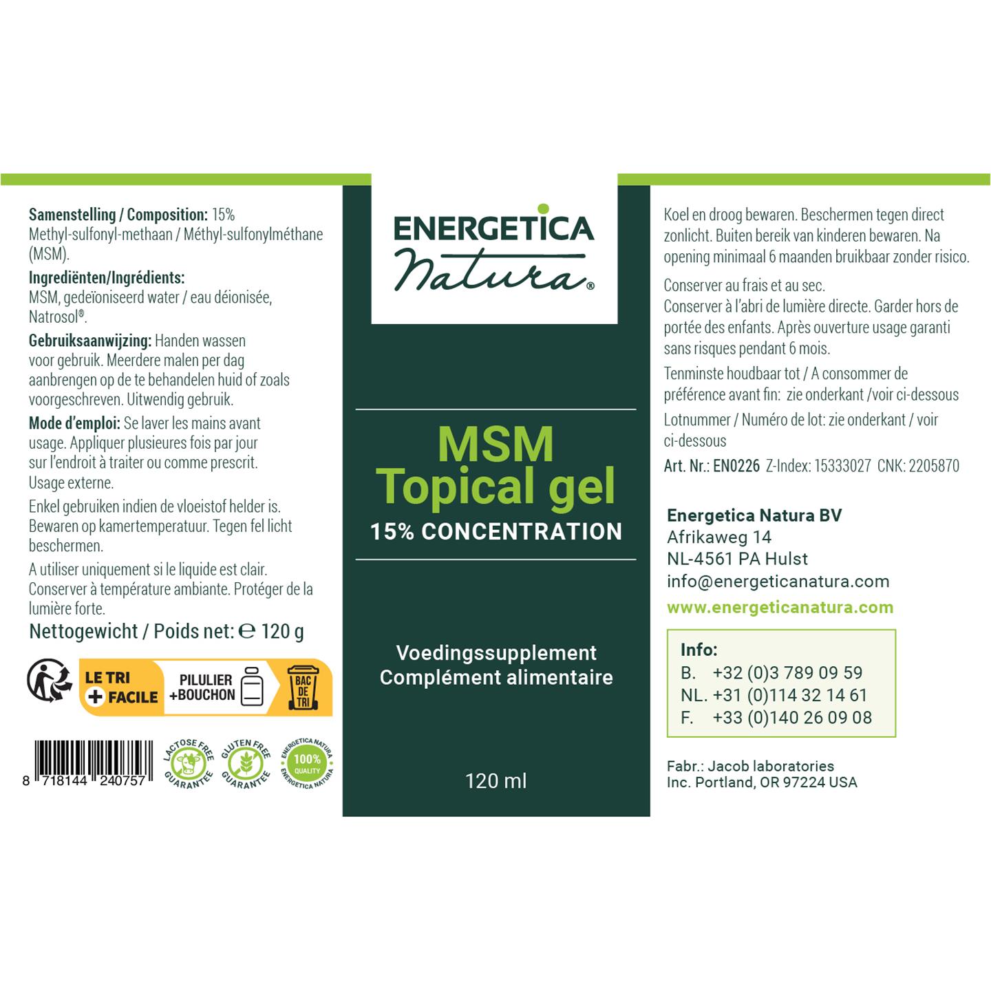 Methyl Sulfonyl Methaan (MSM), Gedeïoniseerd water, Natrosol®.