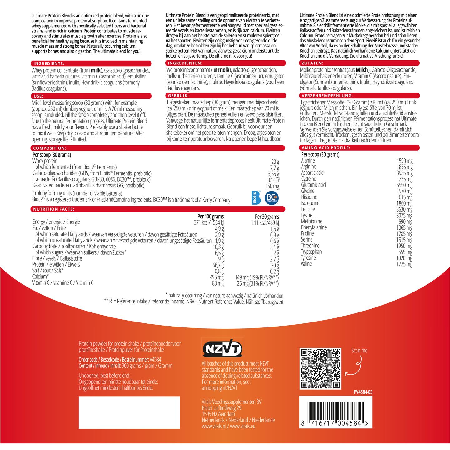 Vitals Ultimate Protein Blend Unflavored 900 gram