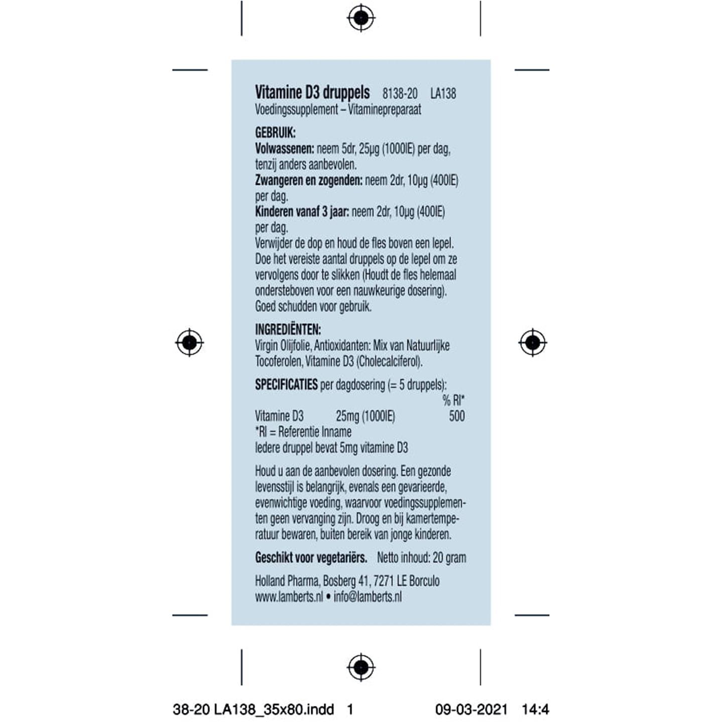 Lamberts Vitamine D3 druppels 20 ml