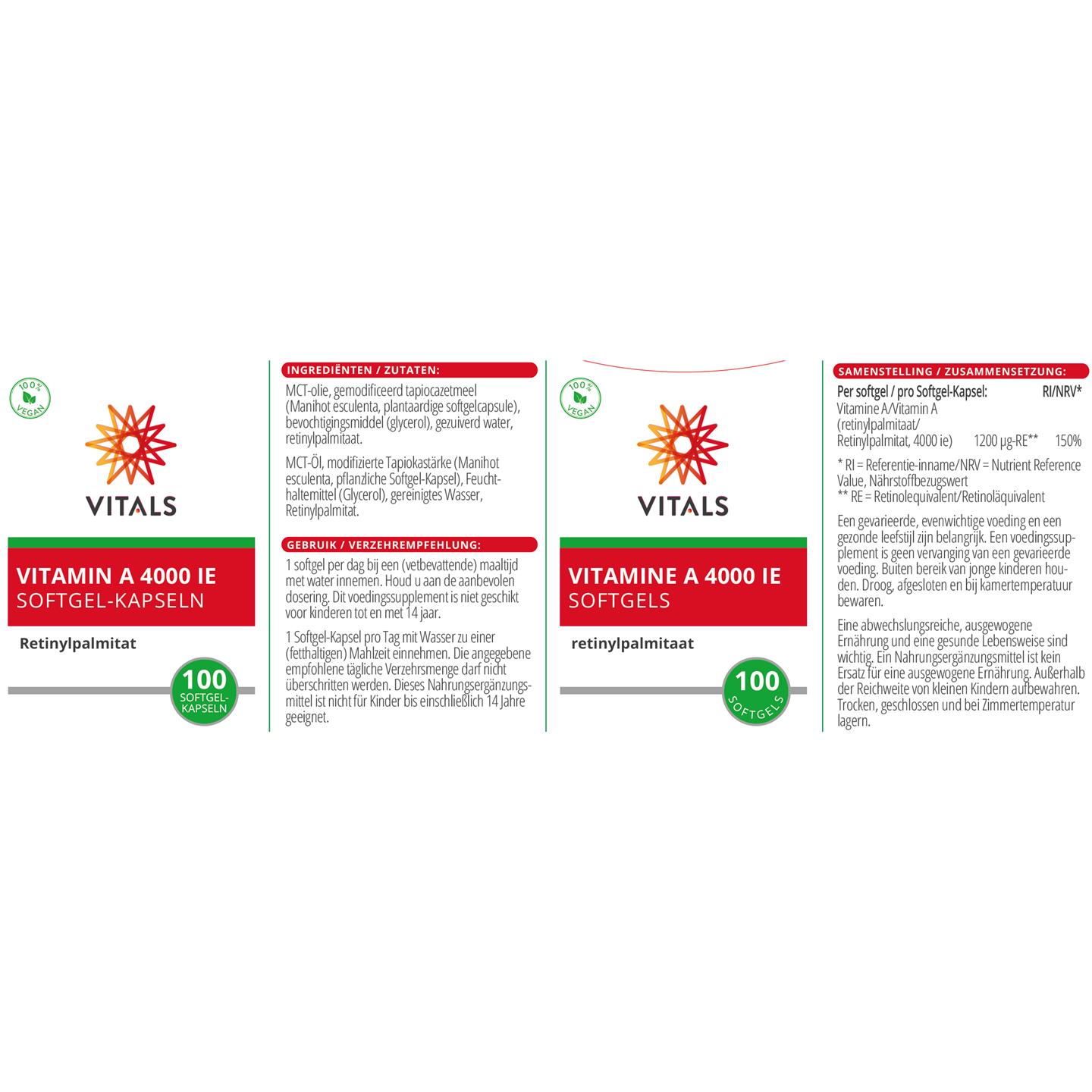 MCT-olie, Plantaardige softgel capsule (Gemodificeerd tapiocazetmeel (Manihot esculenta)), Bevochtigingsmiddel (Glycerol), Gezuiverd water, Retinylpalmitaat.