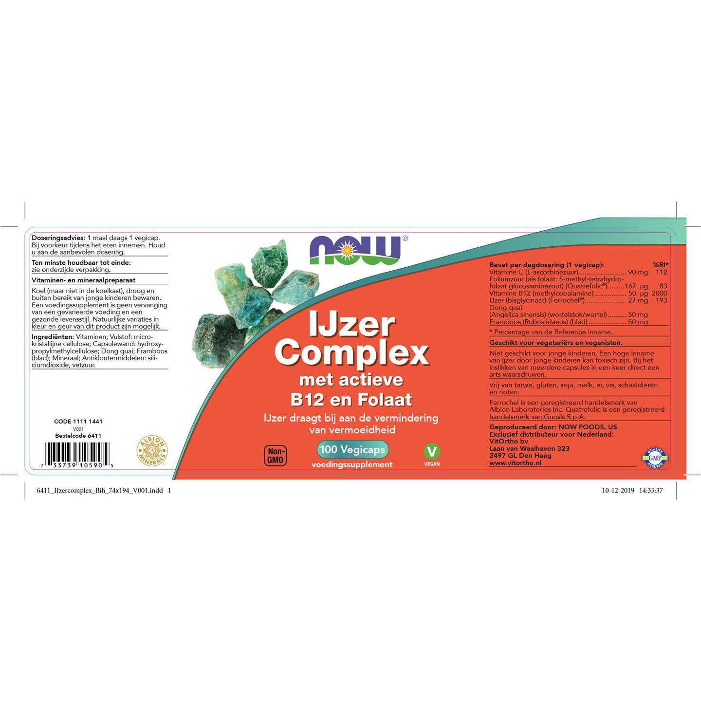 NOW IJzer complex met actieve B12 en Folaat 100 vcaps