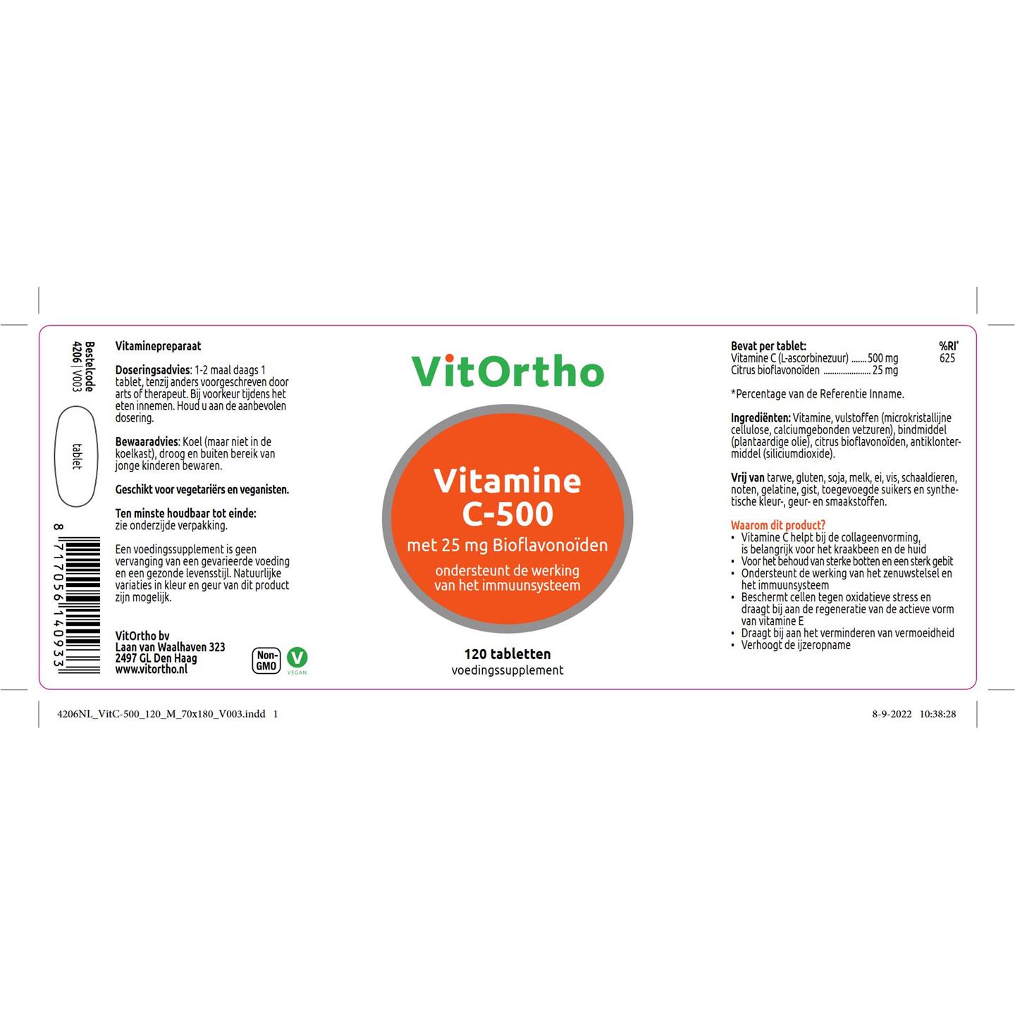 Vitamine C (ascorbinezuur), Vulstoffen (Microkristallijne cellulose, Calciumgebonden vetzuren), Bindmiddel (Plantaardige olie), Citrus bioflavonoïden, Antiklontermiddel (Siliciumdioxide).