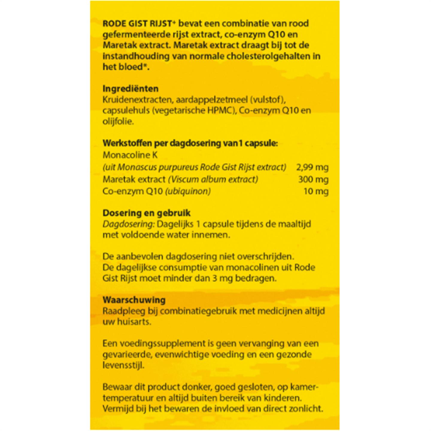 Mag niet worden geconsumeerd als u al andere producten met Rode Gist Rijst gebruikt.
