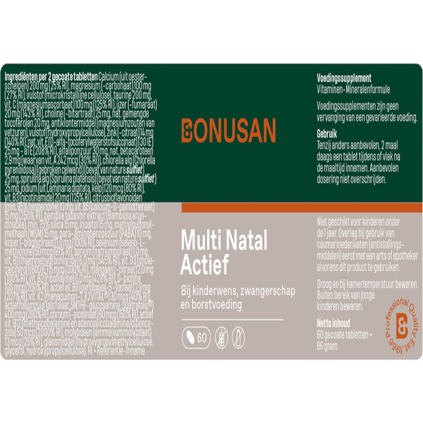 Calcium (uit oesterschelpen), Magnesium (carbonaat), Vulstof (Microkristallijne cellulose), Taurine, Vitamine C (magnesiumascorbaat), IJzer (fumaraat), Choline (bitartraat), Natuurlijke gemengde tocoferolen, Antiklontermiddel (Magnesiumzouten van vetzuren), Vulstof (Hydroxypropylcellulose), Zink (citraat), Natuurlijke vitamine E (D-alfatocoferylsuccinaat), Alfaliponzuur, Natuurlijk bètacaroteen, Chlorella alg (Chlorella pyrenoidosa) (gebroken celwand) (bevat van nature sulfiet) (Sulfiet), Spirulina alg (Spirulina platensis) (bevat van nature sulfiet) (Sulfiet), Jodium (uit Laminaria digitata, kelp), Vitamine B3 (nicotinamide), Citrusbioflavonoïden, Vitamine B5 (calcium-d-pantothenaat), Bamboe tabashir extract (Bambusa arundinacea), Inositol, Methylsulfonylmethaan (MSM), Para-aminobenzoëzuur (PABA), Koper (bisglycinaat), Selenium (seleno-l-methionine), Borium (natriumboraat), Vitamine B1 (thiaminehydrochloride), Vitamine D3 (cholecalciferol), Mangaan (citraat), Vitamine B2 (riboflavine), D-Biotine, Actief vitamine B6 (pyridoxaal-5-fosfaat), Vitamine K2 (menaquinon-7, K2Vital®), Actief foliumzuur (folaat, 5MTHF-glucosamine, Quatrefolic®), Chroom (picolinaat), Actief vitamine B12 (methylcobalamine en adenosylcobalamine/dibencozide), Molybdeen (ammoniummolybdaat), Glansmiddel (Hydroxypropylmethylcellulose, Glycerol, Hydroxypropylcellulose).