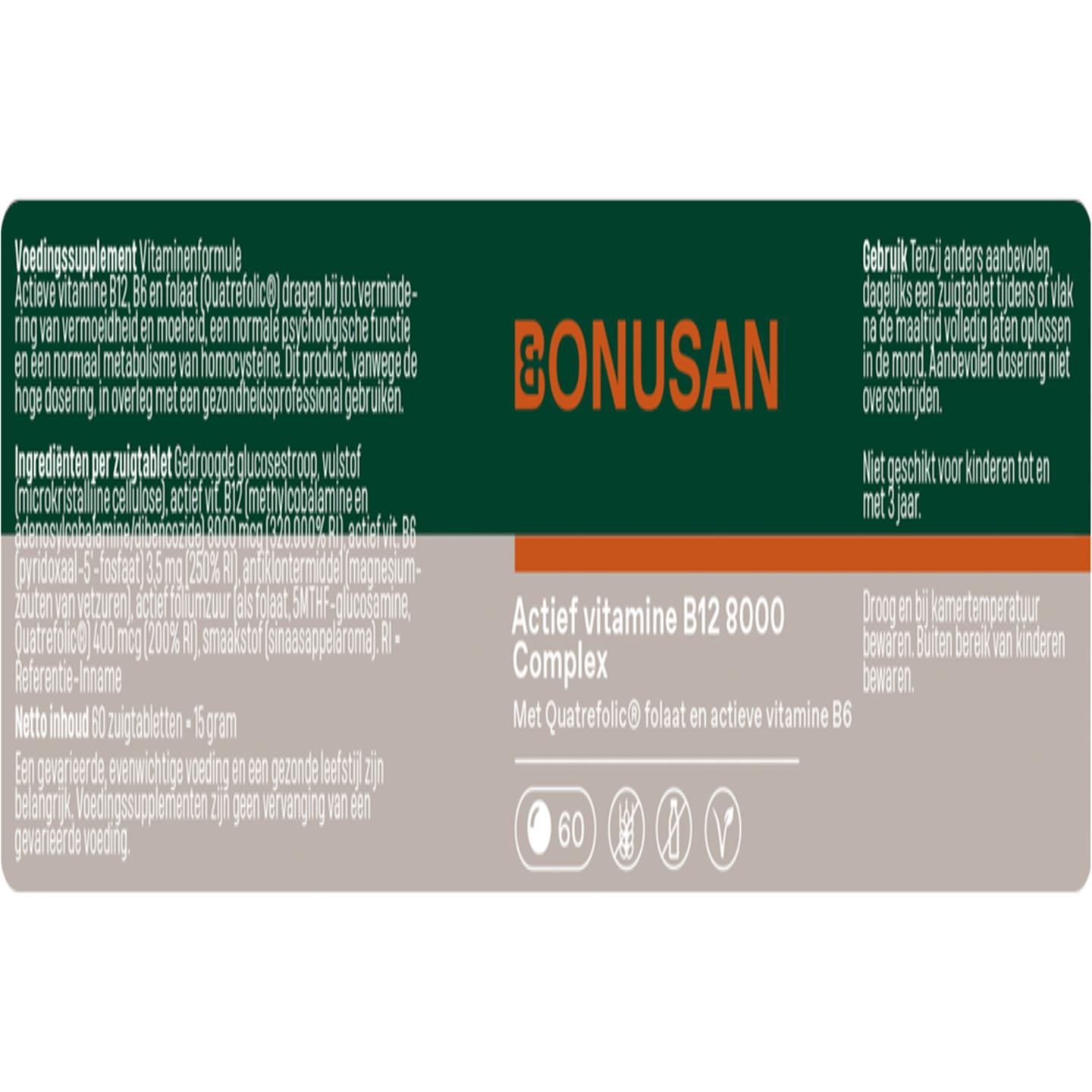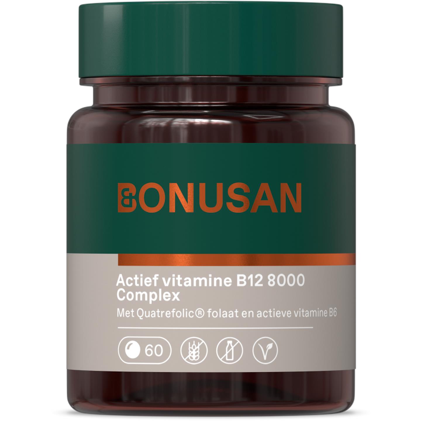 Actief vitamine B12 (methylcobalamine en adenosylcobalamine/dibencozide) | 8000 mcg | 320.000 |