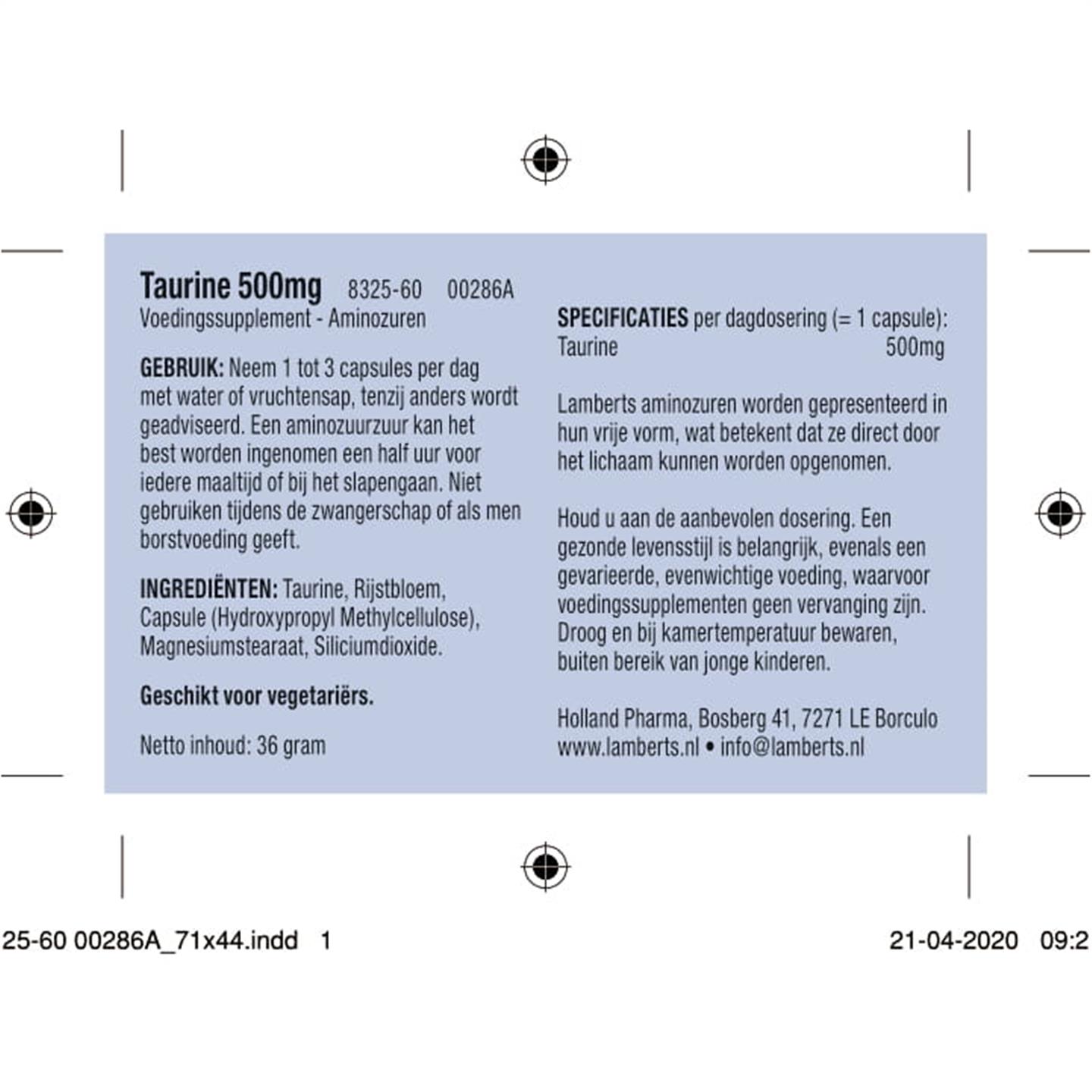 Taurine, Rijstebloem, Capsule (Hydroxypropylmethylcellulose), Magnesiumstearaat, Siliciumdioxide.