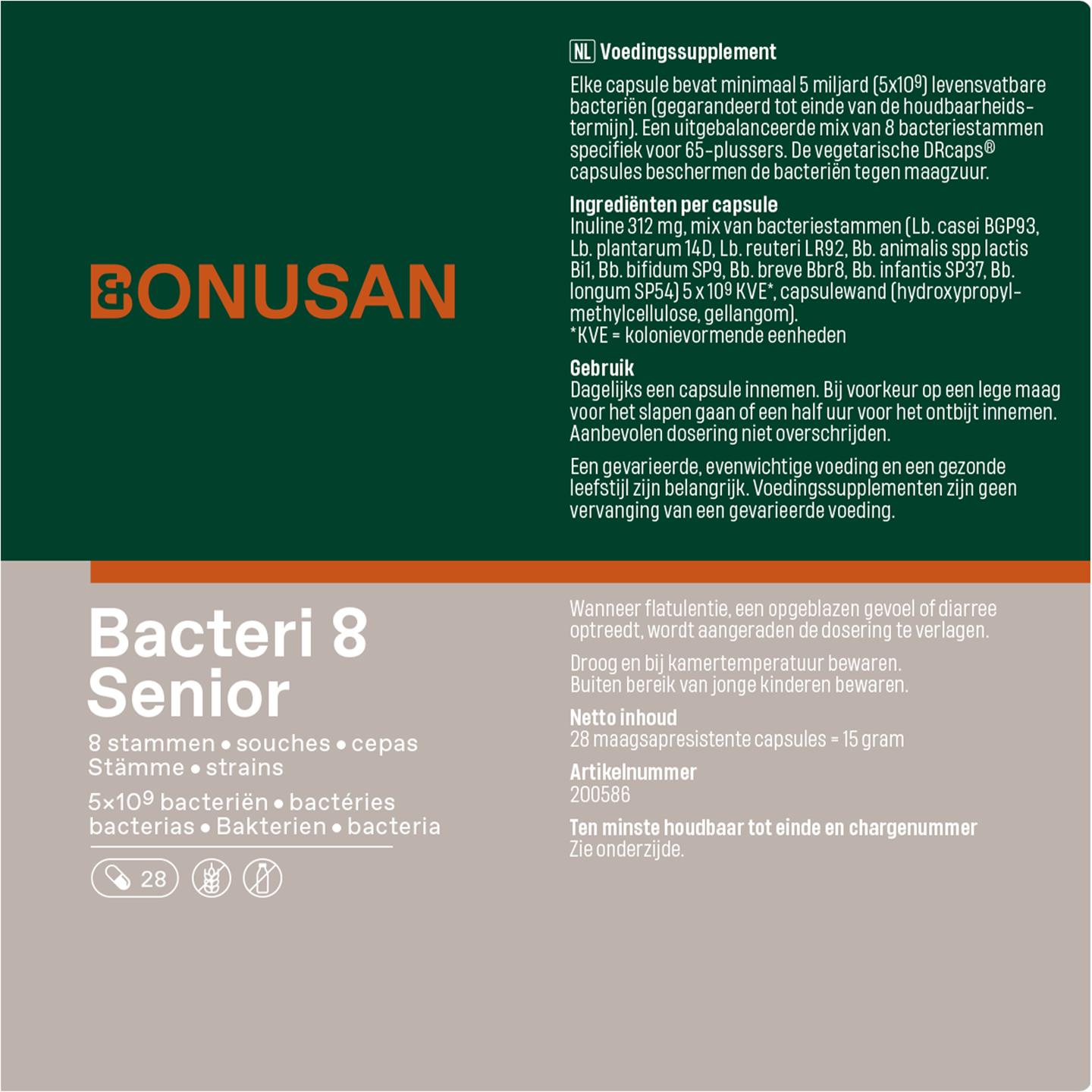 Inuline, Mix van bacteriestammen (Lb. casei BGP93, Lb. plantarum 14D, Lb. reuteri LR92, Bb. animalis spp lactis Bi1, Bb. bifidum SP9, Bb. breve Bbr8, Bb. infantis SP37, Bb. longum SP54), Capsulewand (Hydroxypropylmethylcellulose, Gellangom).Waarschuwing