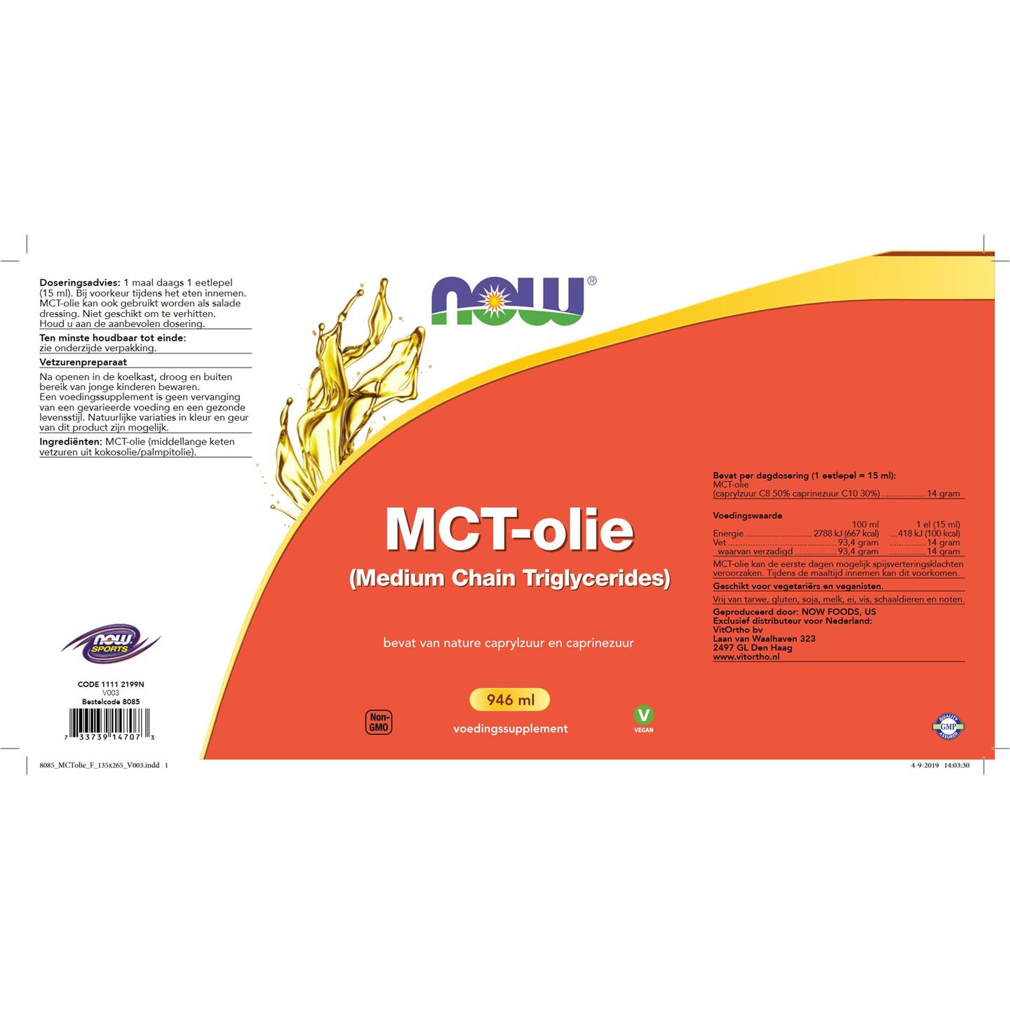 MCT-olie (Middellange keten vetzuren uit kokosolie/palmpitolie).