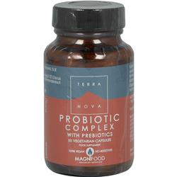 Probiotica mix, MAGNIFOOD complex, Vegetarische capsule (Hydroxypropylmethylcellulose), FOS (fructo-oligosacchariden), Lariksboom Arabinogalactan.
