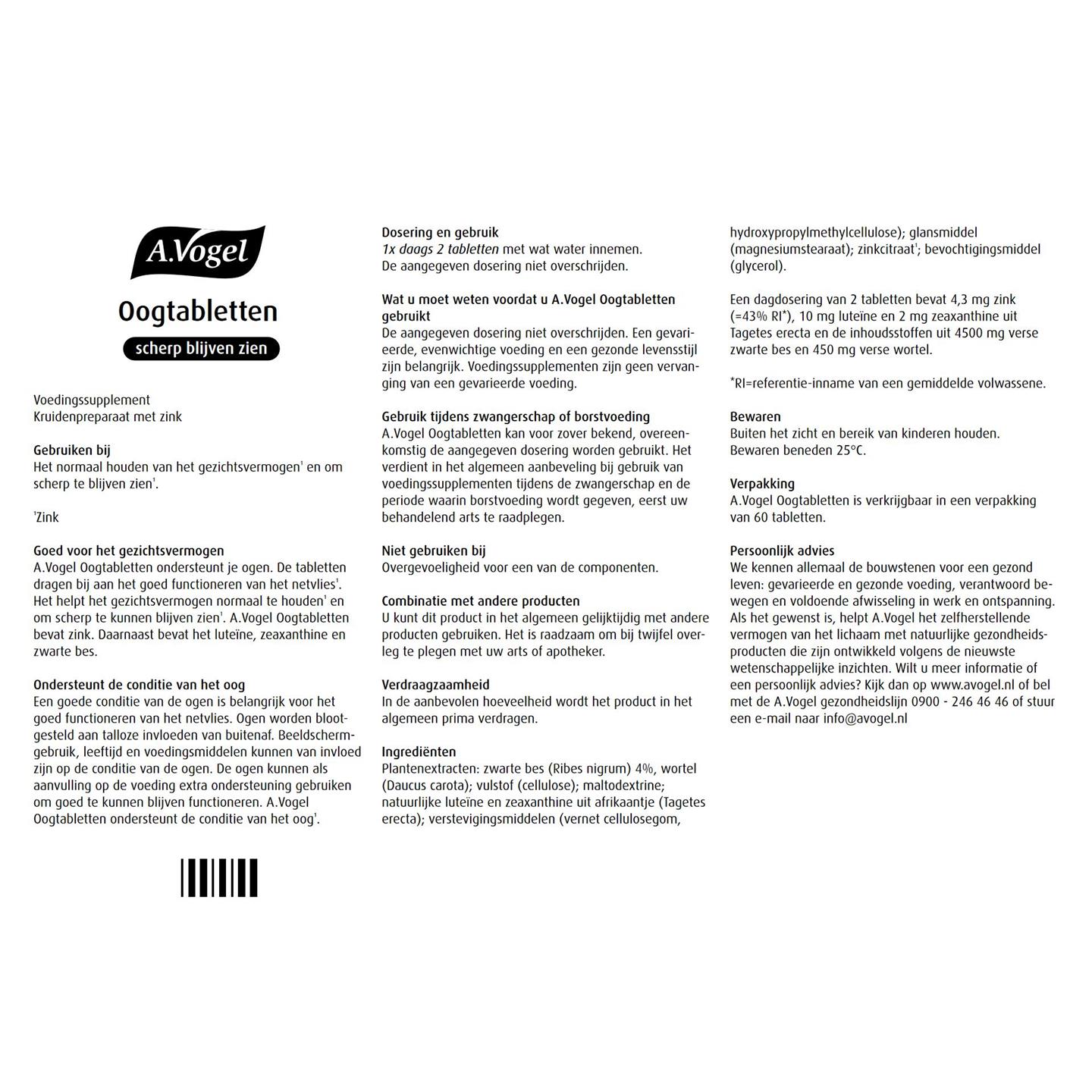 Plantenextracten, Vulstof (Cellulose), Maltodextrine, Luteïne (uit Afrikaantje (Tagetes erecta)), Zeaxanthine (uit Afrikaantje (Tagetes erecta)), Verstevigingsmiddelen (Vernet cellulosegom, Hydroxypropylmethylcellulose), Glansmiddel (Magnesiumstearaat), Zinkcitraat, Bevochtigingsmiddel (Glycerol).