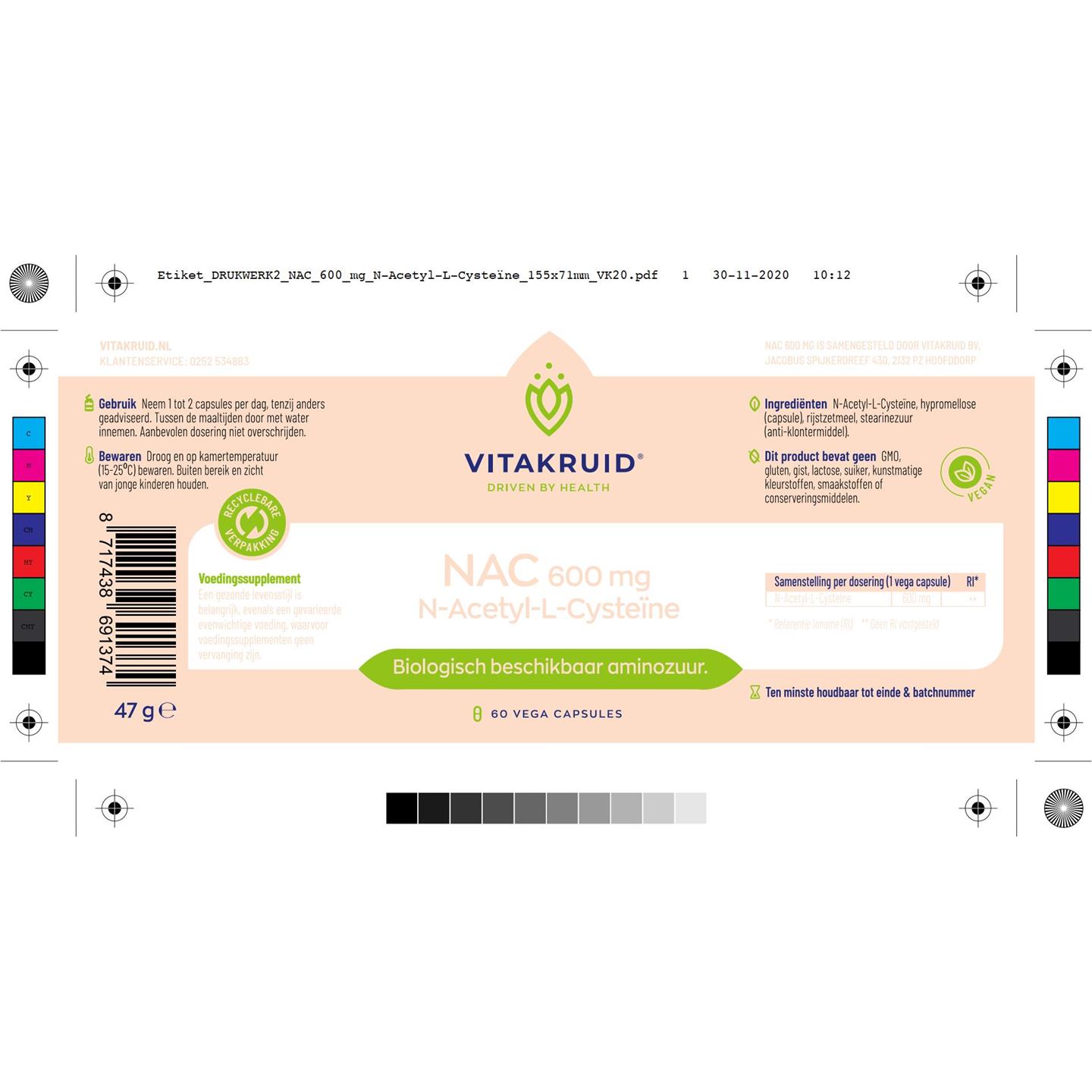 VitaKruid NAC 600 mg N-Acetyl-L-Cysteïne 60 vcaps