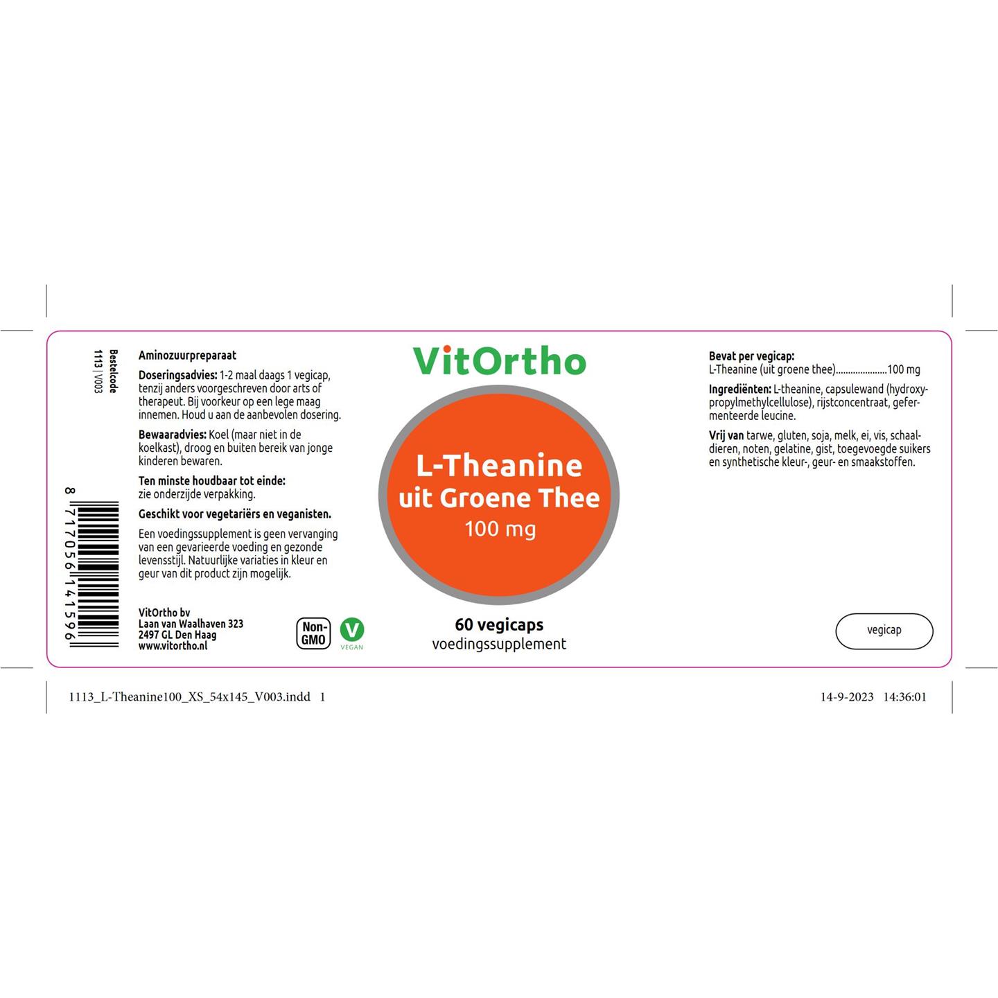 VitOrtho L-Theanine uit Groene thee 100 mg 60 vcaps