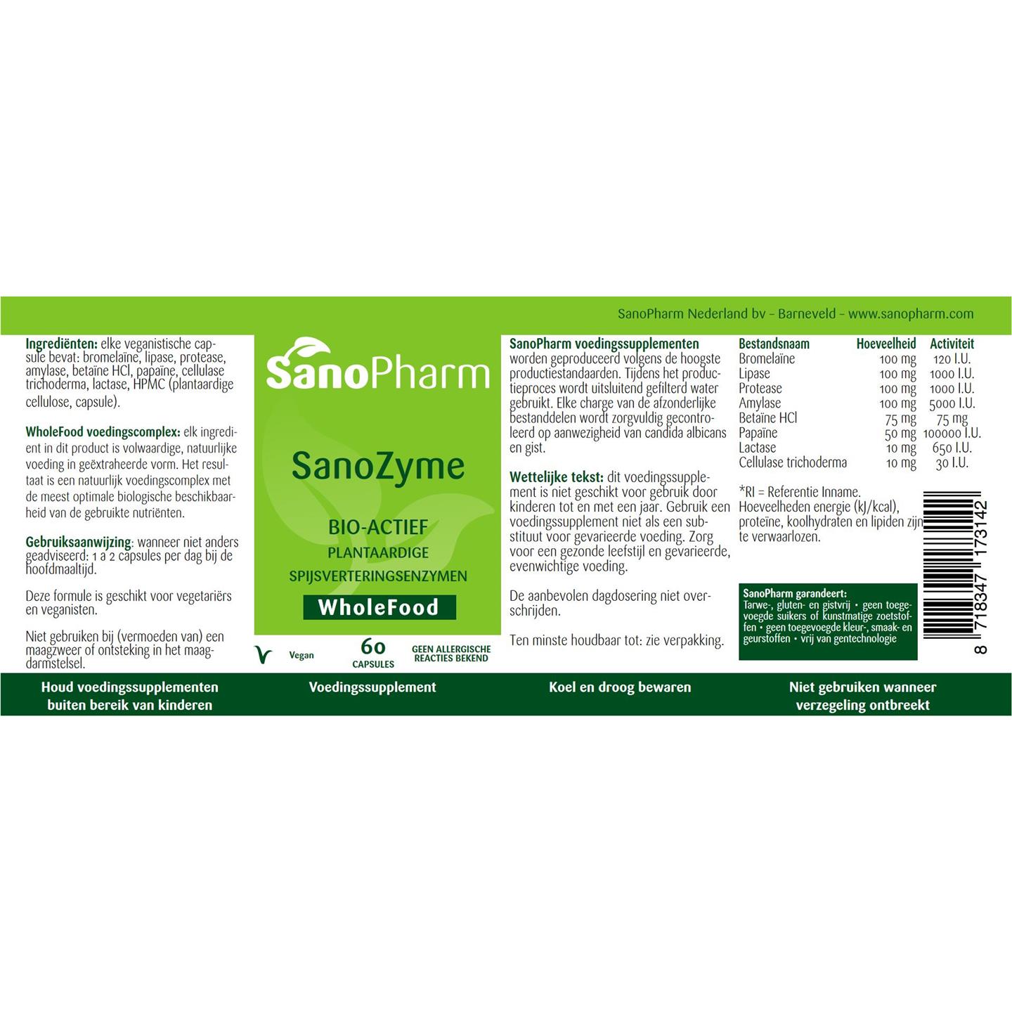 Bromelaïne, Lipase, Protease, Amylase, Betaïne HCl, Papaïne, Cellulase trichoderma, Lactase, Capsule (Hydroxypropylmethylcellulose (plantaardige cellulose)).