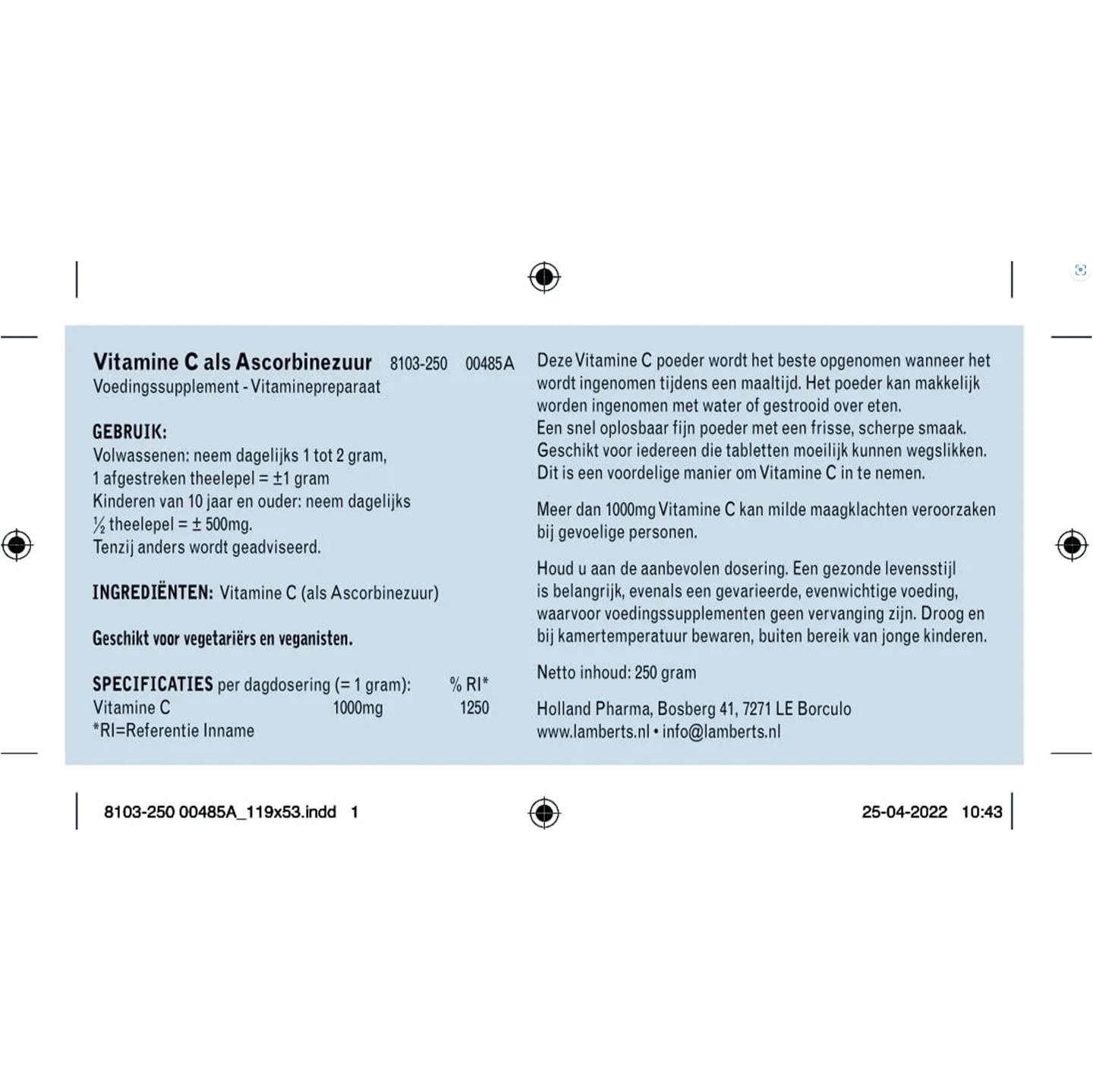 Lamberts Vitamine C als ascorbinezuur 250 gram