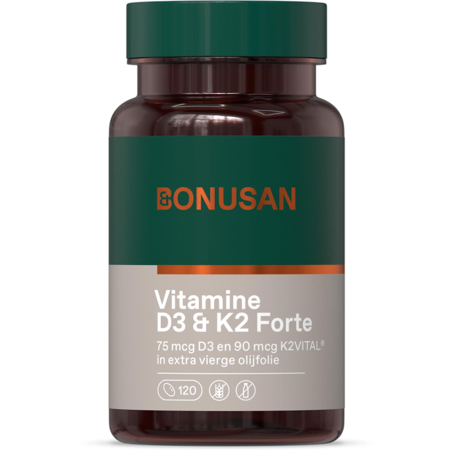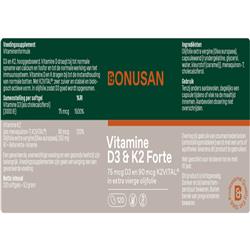 Olijfolie extra vierge (Olea europaea), Capsulewand (Rundergelatine, Glycerol, Water, Kleurstof: Caramel), Menaquinon-7, Cholecalciferol.