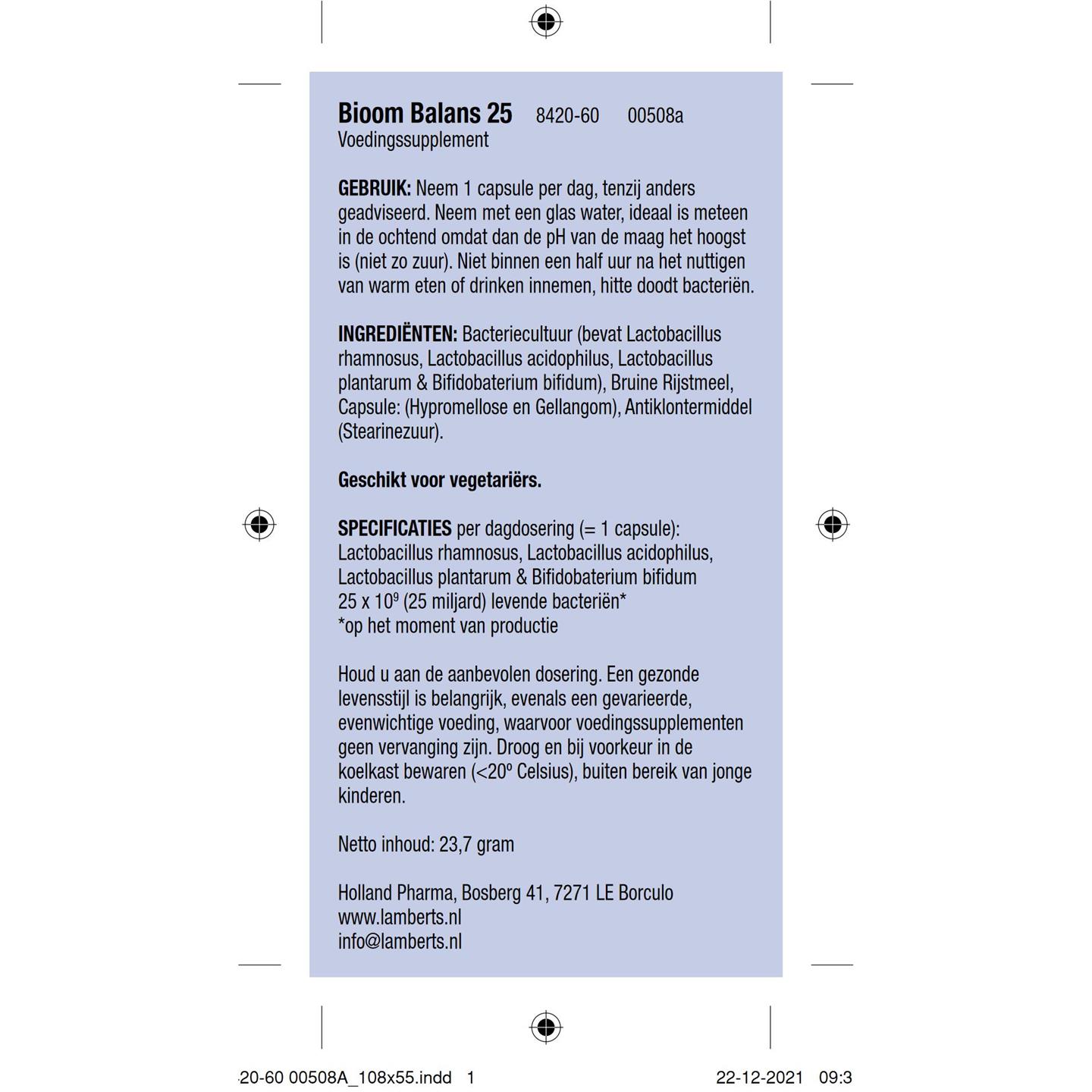 Bacteriecultuur (Bevat: Lactobacillus rhamnosus, Lactobacillus acidophilus, Lactobacillus plantarum, Bifidobacterium bifidum), Bruine rijstmeel, Capsule (Hypromellose, Gellangom), Antiklontermiddel (Stearinezuur).