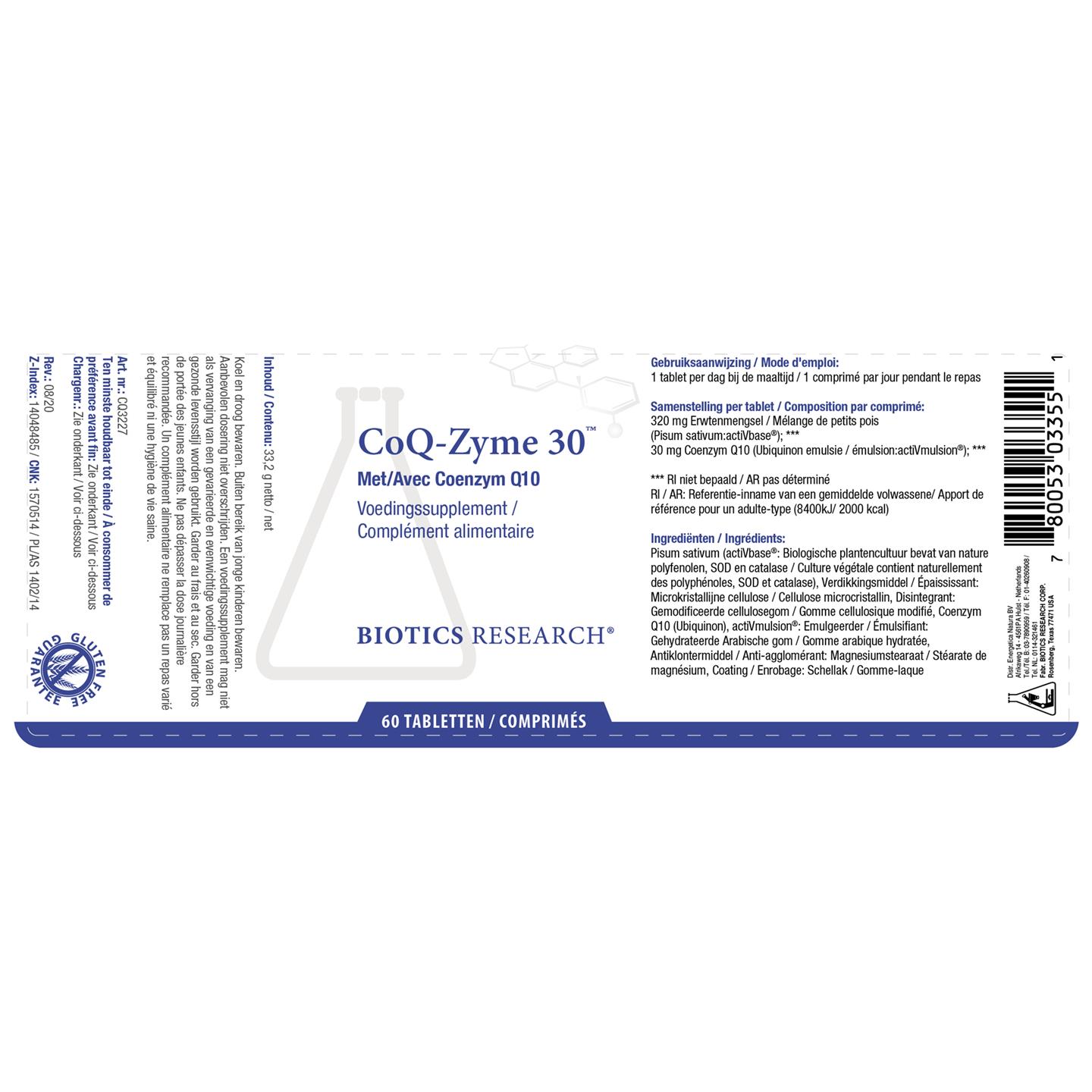 Erwtenmengsel (Pisum sativum: actiVbase®), Verdikkingsmiddel (Microkristallijne cellulose), Desintegratiemiddel (Gemodificeerd cellulosegom), Co-enzym Q10 (ubiquinon emulsie: actiVmulsion®), Emulgator (Gehydrateerde Arabische gom), Antiklontermiddel (Magnesiumstearaat), Coating (Schellak).