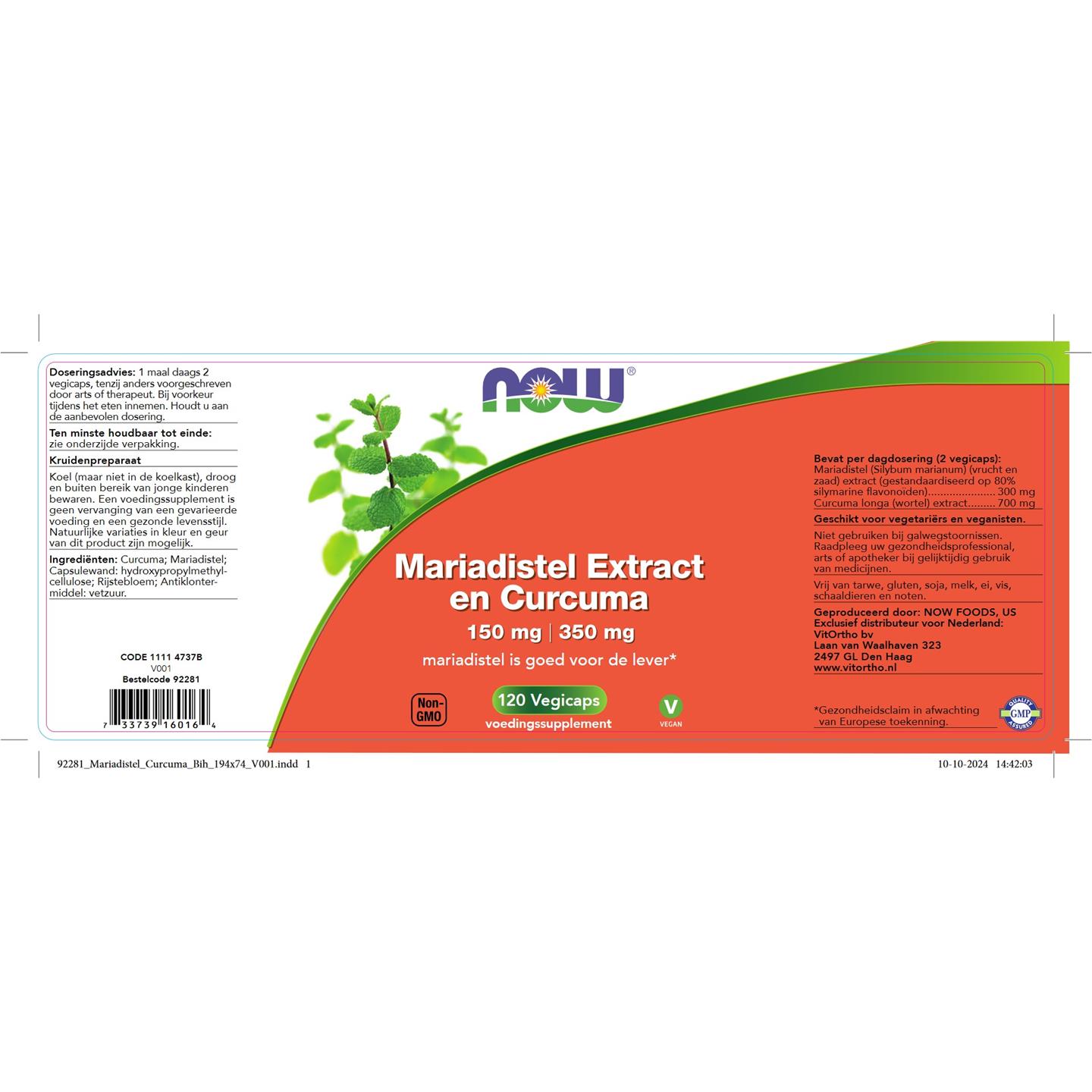 NOW Mariadistel Extract en Curcuma 120 vcaps