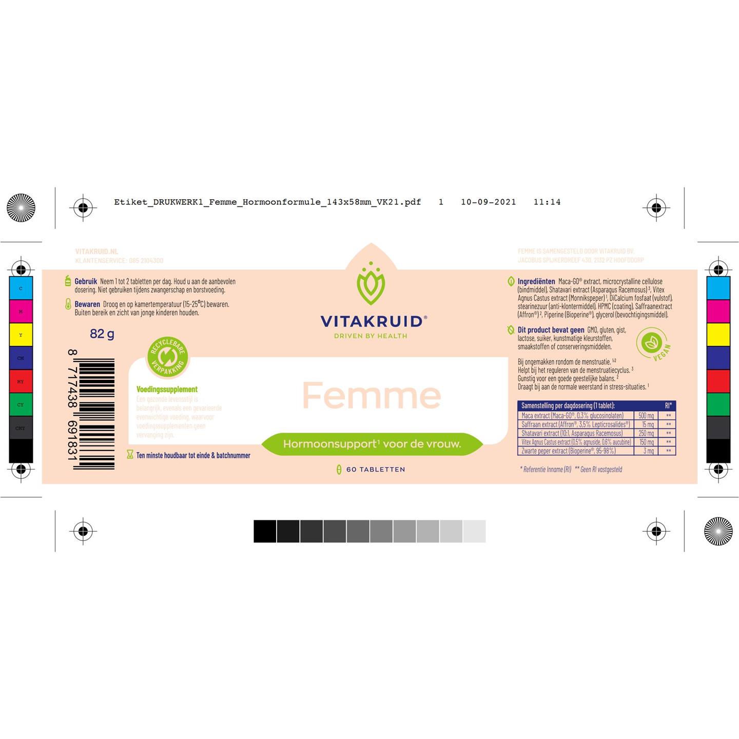 Maca (Maca-Go®) extract, Bindmiddel (Microkristallijne cellulose), Shatavari (Asparagus racemosus) extract, Monnikspeper (Vitex agnus-castus) extract, Vulstof (Dicalciumfosfaat), Antiklontermiddel (Stearinezuur), Coating (Hydroxypropylmethylcellulose), Saffraan extract (Affron®), Piperine (Bioperine®), Bevochtigingsmiddel (Glycerol).