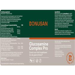 Glucosaminesulfaat (Schaaldieren), Vulstof (Microkristallijne cellulose), Methylsulfonylmethaan, Chondroïtinesulfaat, Equisetum arvense, Salix alba, Vulstof (Hydroxypropylcellulose), Antiklontermiddel (Magnesiumzouten van vetzuren), Zinkmono-L-methioninesulfaat, Koperbisglycinaat, Mangaancitraat, Glansmiddel (Hydroxypropylmethylcellulose, Glycerol, Hydroxypropylcellulose).
