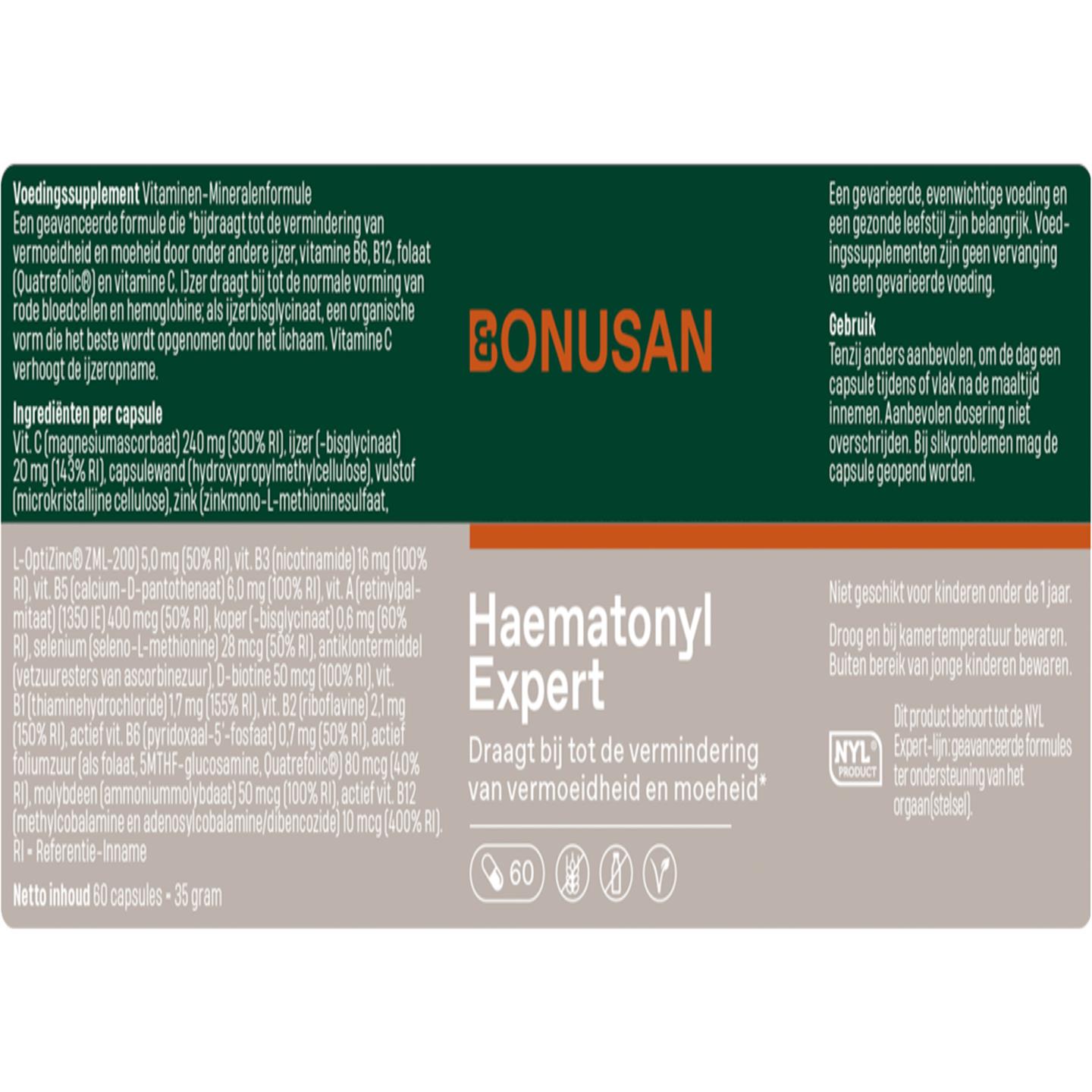 Vitamine C (magnesiumascorbaat), IJzer (bisglycinaat), Capsulewand (Hydroxypropylmethylcellulose), Vulstof (Microkristallijne cellulose), Zink (mono-L-methioninesulfaat, OptiZinc® ZML-200), Vitamine B3 (nicotinamide), Vitamine B5 (calcium-d-pantothenaat), Vitamine A (retinylpalmitaat), Koper (bisglycinaat), Selenium (seleno-l-methionine), Antiklontermiddel (Vetzuuresters van ascorbinezuur), D-Biotine, Vitamine B1 (thiaminehydrochloride), Vitamine B2 (riboflavine), Actief vitamine B6 (pyridoxaal-5-fosfaat), Actief foliumzuur (folaat, 5MTHF-glucosamine, Quatrefolic®), Molybdeen (ammoniummolybdaat), Actief vitamine B12 (methylcobalamine en adenosylcobalamine/dibencozide).