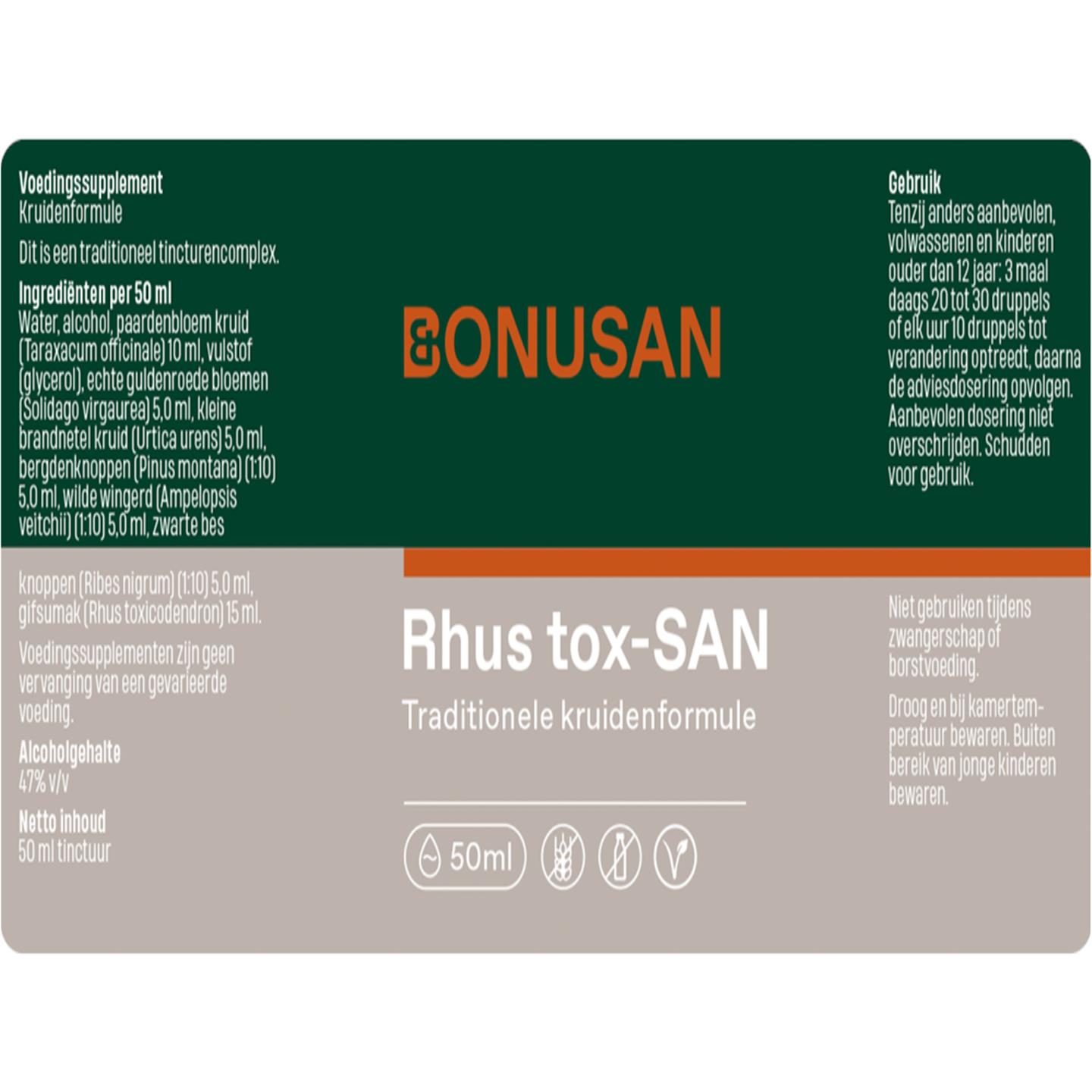Water, Alcohol, Paardenbloem kruid (Taraxacum officinale), Vulstof (Glycerol), Echte guldenroede bloemen (Solidago virgaurea), Kleine brandnetel kruid (Urtica urens), Bergdenknoppen (Pinus montana), Wilde wingerd (Ampelopsis veitchii), Zwarte bes knoppen (Ribes nigrum), Gifsumak (Rhus toxicodendron).
