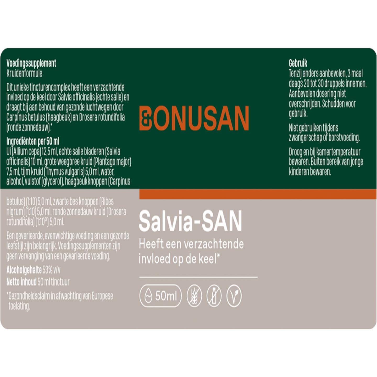 Ui (Allium cepa), Echte salie bladeren (Salvia officinalis), Grote weegbree kruid (Plantago major), Tijm kruid (Thymus vulgaris), Water, Alcohol, Vulstof (Glycerol), Haagbeukknoppen (Carpinus betulus), Zwarte bes knoppen (Ribes nigrum), Ronde zonnedauw kruid (Drosera rotundifolia).