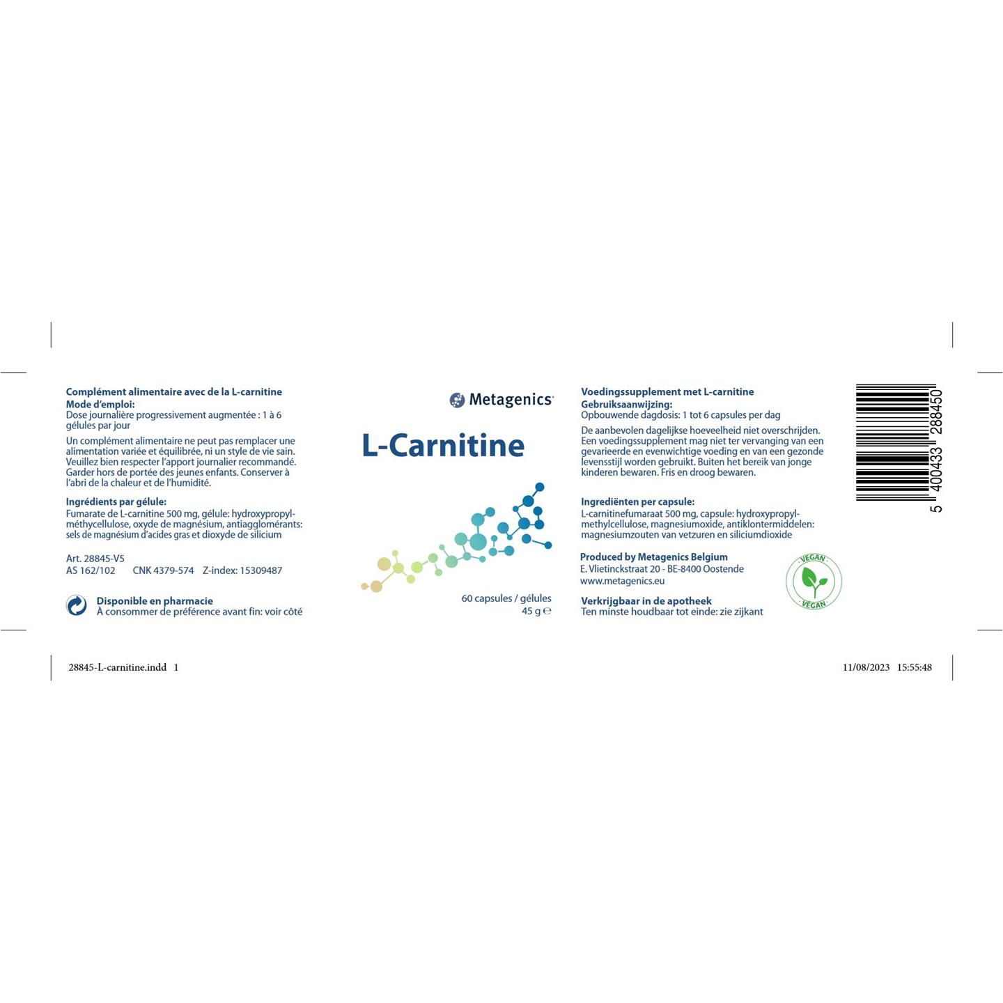 l-Carnitine fumaraat, Capsule (Hydroxypropylmethylcellulose), Magnesiumoxide, Antiklontermiddelen (Magnesiumzouten van vetzuren, Siliciumdioxide).
