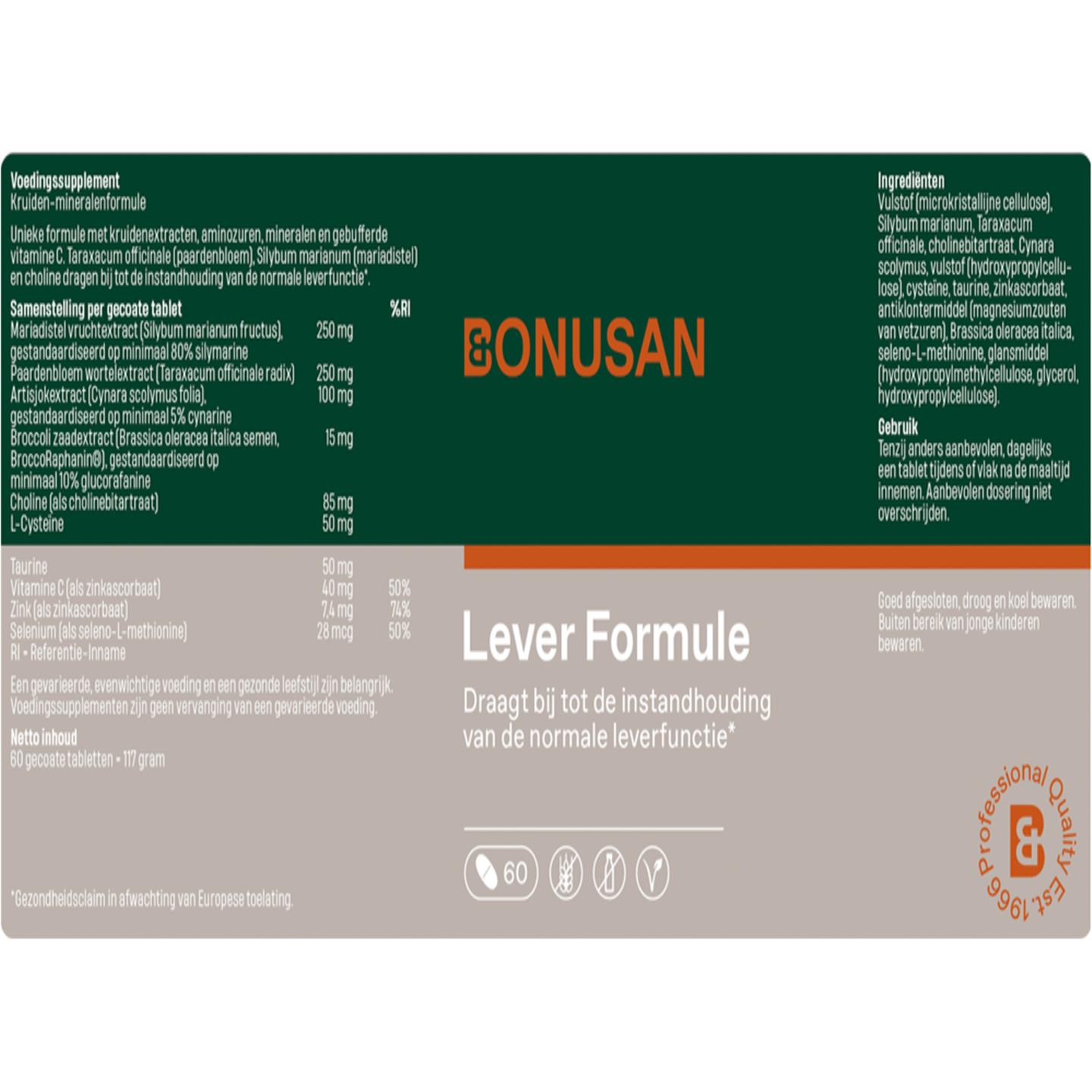 Vulstof (Microkristallijne cellulose), Silybum marianum, Taraxacum officinale, Cholinebitartraat, Cynara scolymus, Vulstof (Hydroxypropylcellulose), Cysteïne, Taurine, Zinkascorbaat, Antiklontermiddel (Magnesiumzouten van vetzuren), Brassica oleracea italica, Seleno-L-methionine, Glansmiddel (Hydroxypropylmethylcellulose, Glycerol, Hydroxypropylcellulose).