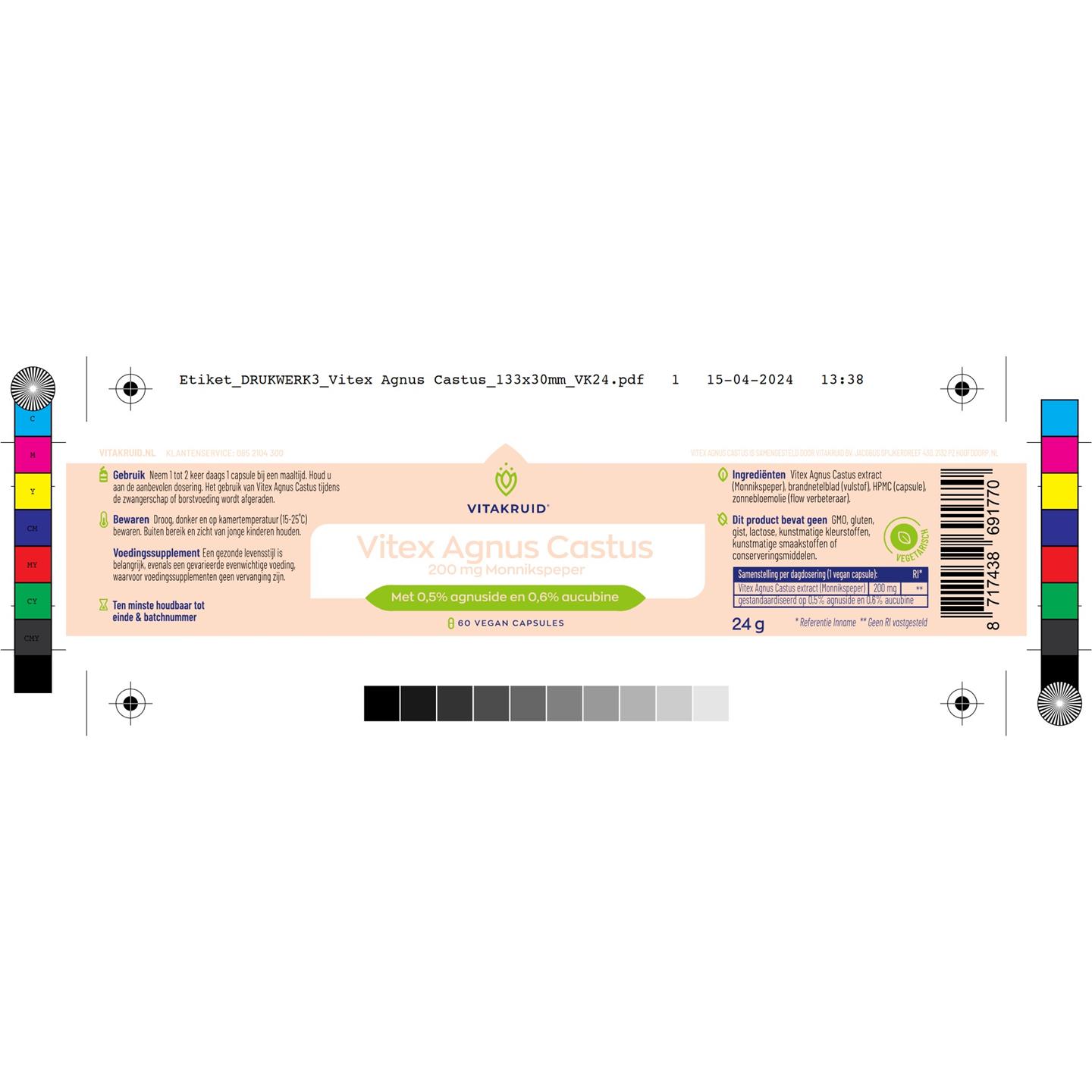 Vitex agnus castus extract (Monnikspeper), Brandnetelblad (Vulstof), HPMC (Capsule), Zonnebloemolie (Flow verbeteraar).
