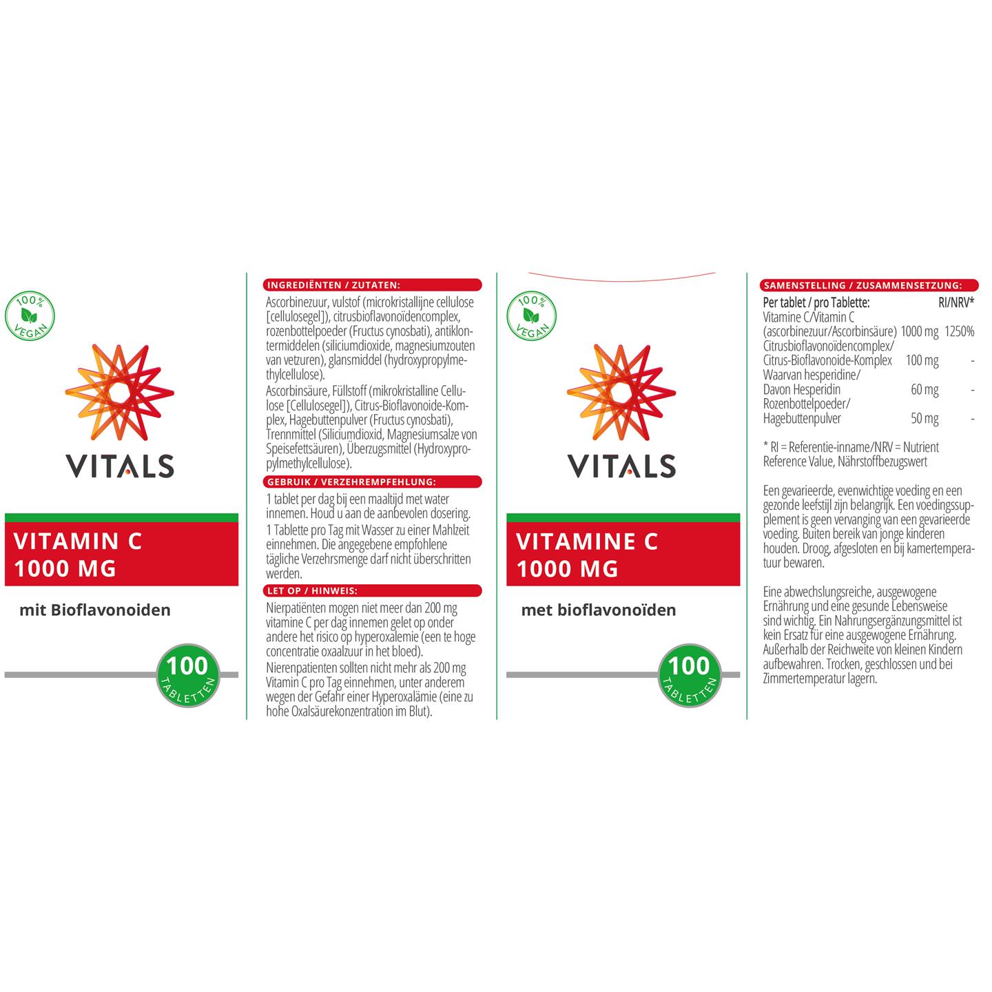 Vitamine C (ascorbinezuur), Vulstof (Microkristallijne cellulose (cellulosegel)), Citrus bioflavonoïden complex, Rozenbottel (Fructus cynosbati) poeder, Antiklontermiddelen (Siliciumdioxide, Magnesiumzouten van vetzuren), Glansmiddel (Hydroxypropylmethylcellulose).