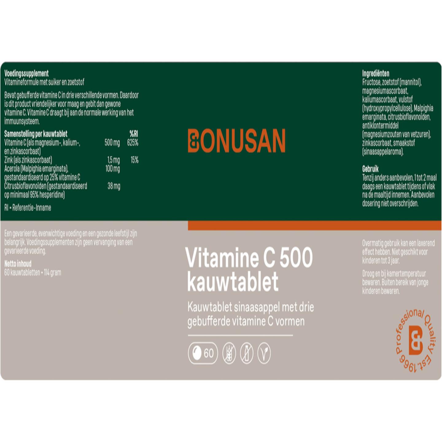 Fructose, Zoetstof (Mannitol), Magnesiumascorbaat, Kaliumascorbaat, Vulstof (Hydroxypropylcellulose), Malpighia emarginata, Citrusbioflavonoïden, Antiklontermiddel (Magnesiumzouten van vetzuren), Zinkascorbaat, Smaakstof (Sinaasappelaroma).