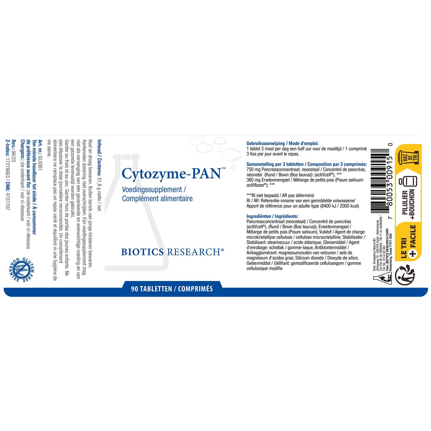 Pancreasconcentraat (rund: actiVcell®), Erwtenmengsel (Pisum sativum: actiVbase®), Vulstof (Microkristallijne cellulose), Stabilisator (Stearinezuur), Glansmiddel (Schellak), Antiklontermiddelen (Magnesiumzouten van vetzuren, Siliciumdioxide), Geleermiddel (Gemodificeerd cellulosegom).
