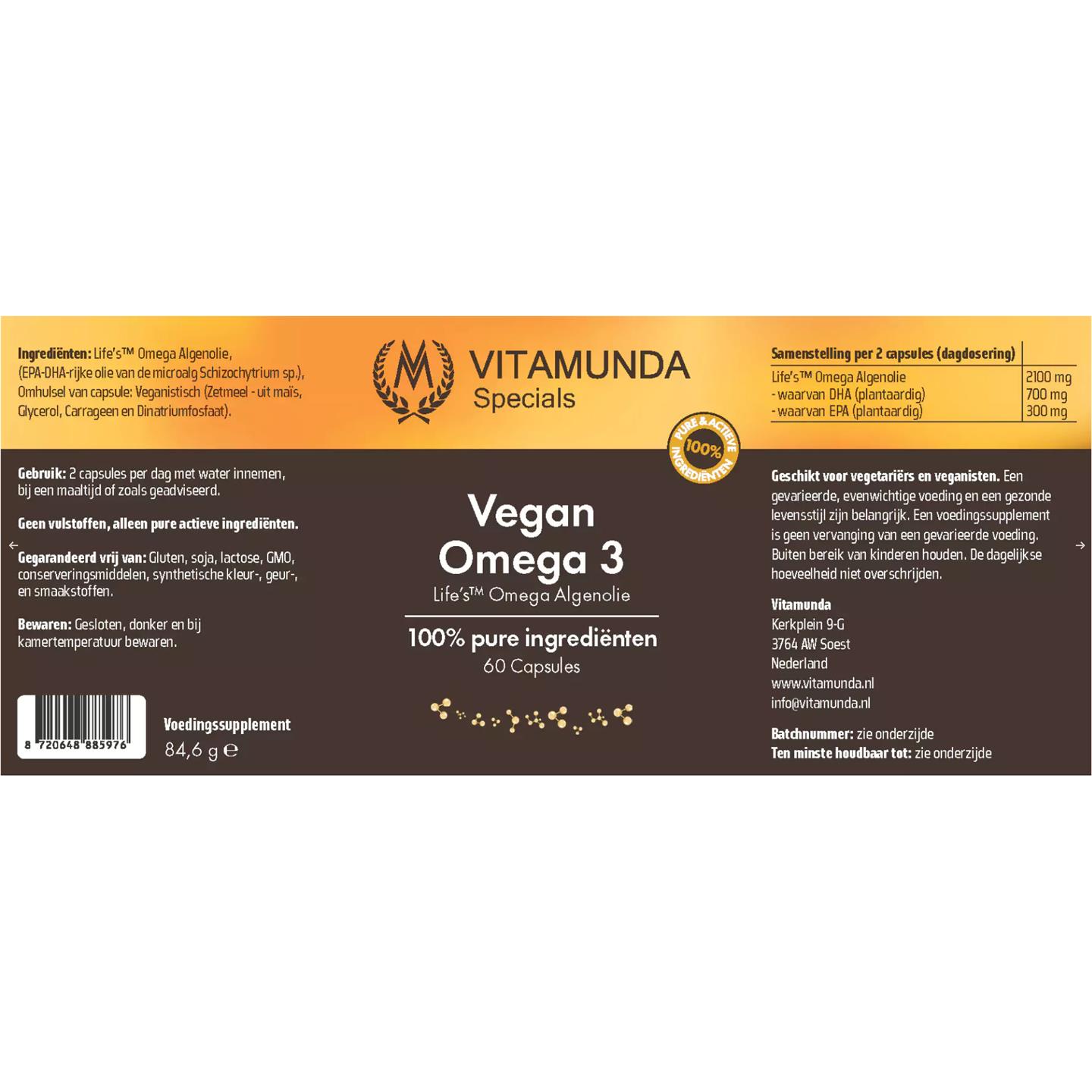 Life's™ Omega Algenolie (EPA-DHA-rijke olie van de microalg Schizochytrium sp.), Omhulsel van capsule (Veganistisch: Zetmeel - uit maïs, Glycerol, Carrageen, Dinatriumfosfaat).
