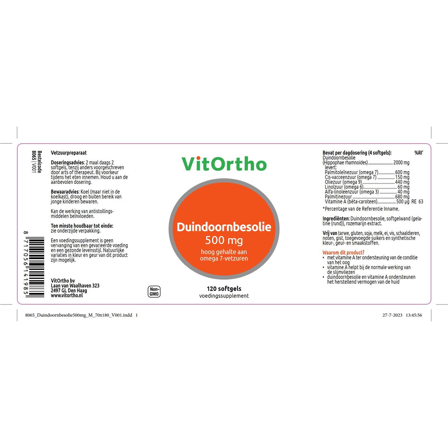 VitOrtho Duindoornbesolie 500 mg 120 softgels