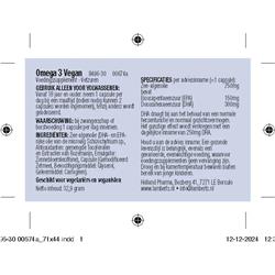 Zee-algenolie (DHA- en EPA-rijke olie van de microalg Schizochytrium sp., Antioxidanten: Gemengde tocoferolen, Extracten van rozemarijn, Emulgator: Zonnebloemlecithine), Capsule (Gemodificeerd zetmeel, Bevochtigingsmiddel: Glycerol, Geleermiddel: Carrageen).