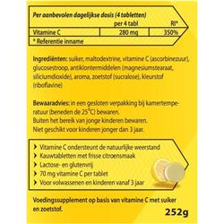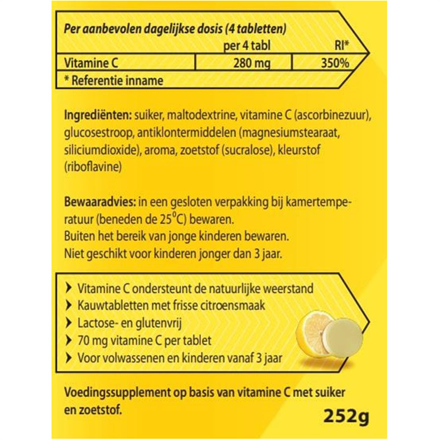 Suiker, Maltodextrine, Vitamine C (ascorbinezuur), Glucosestroop, Antiklontermiddelen (Magnesiumstearaat, Siliciumdioxide), Aroma, Zoetstof (Sucralose), Kleurstof (Riboflavine).