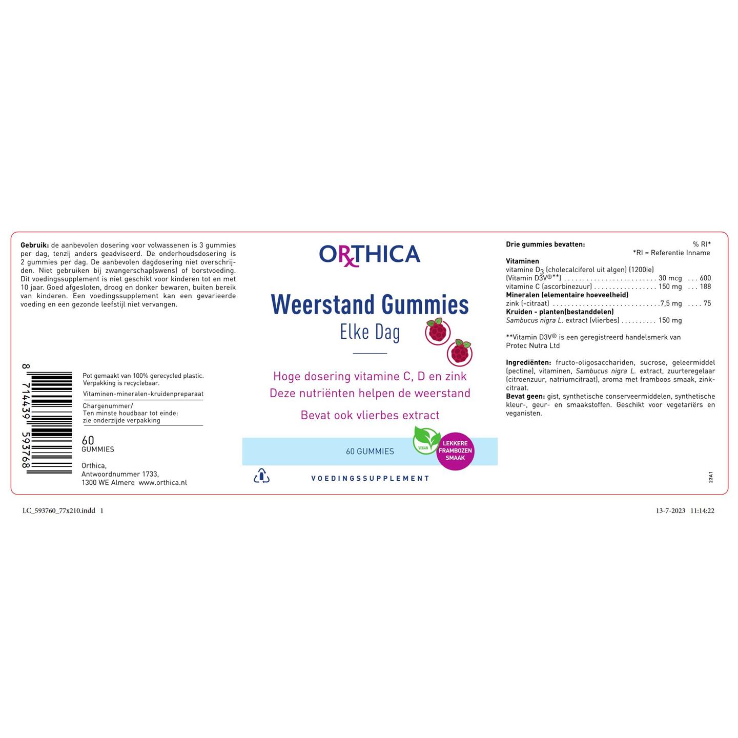 Fructo-oligosacchariden, Sucrose, Geleermiddel (Pectine), Vitaminen, Vlierbes (Sambucus nigra) extract, Zuurteregelaars (Citroenzuur, Natriumcitraat), Aroma (Framboos smaak), Zinkcitraat.