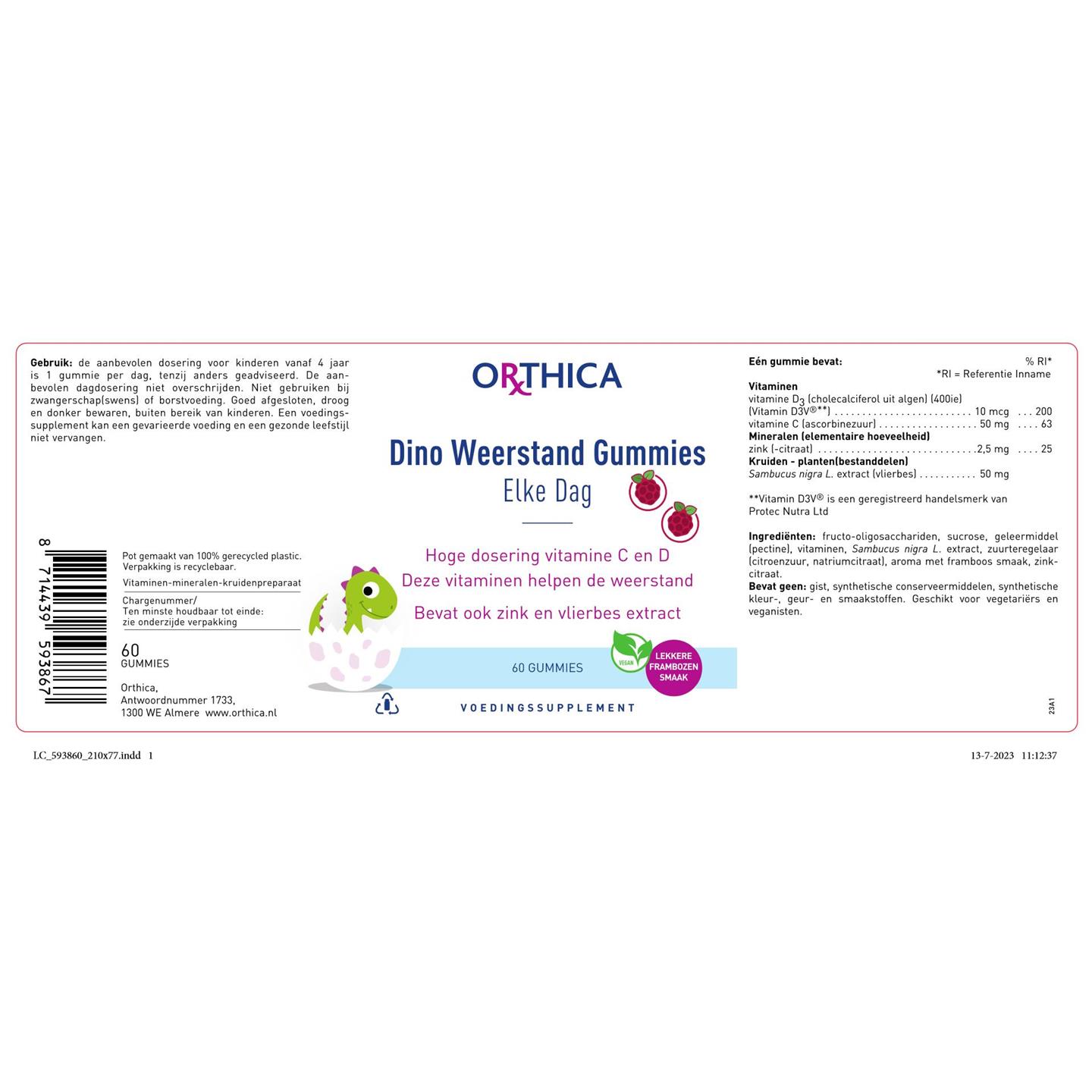 Fructo-oligosacchariden, Sucrose, Geleermiddel (Pectine), Vitaminen, Vlierbes (Sambucus nigra) extract, Zuurteregelaars (Citroenzuur, Natriumcitraat), Aroma (Framboos smaak), Zinkcitraat.