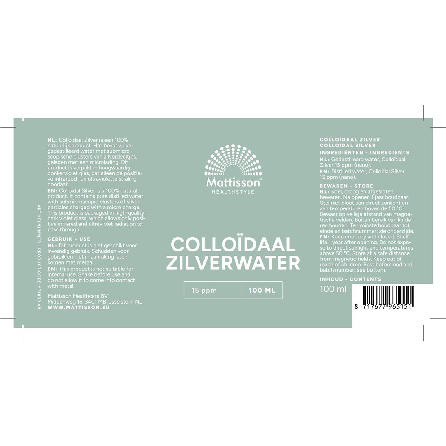 Gedestilleerd water, Colloïdaal Zilver 15 ppm (nano).