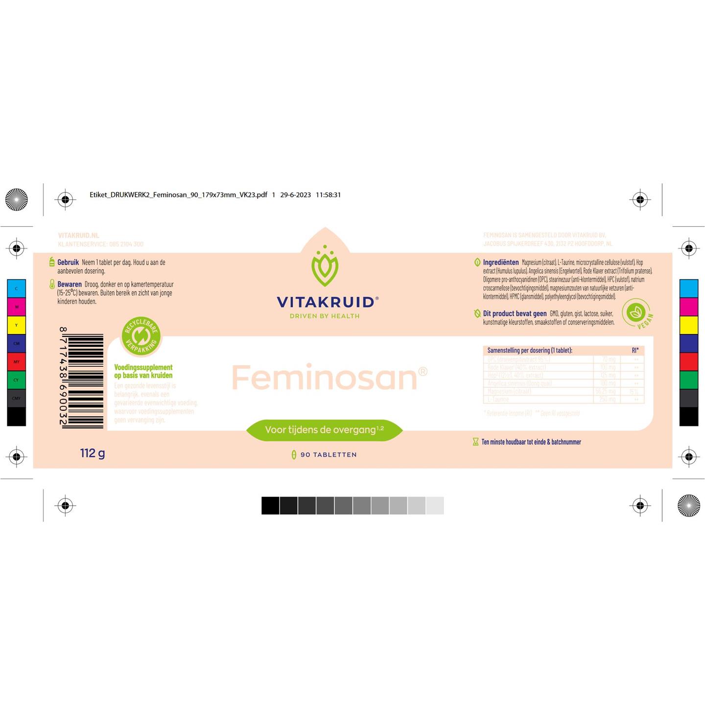 Magnesiumcitraat, L-Taurine, Vulstof (Microkristallijne cellulose), Hop (Humulus lupulus) extract, Engelwortel (Dong Quai) (Angelica sinensis), Rode klaver (Trifolium pratense) extract, Oligomere pro-anthocyanidinen (OPC), Antiklontermiddel (Stearinezuur), Vulstof (Hydroxypropylcellulose), Bevochtigingsmiddel (Natrium croscarmellose), Antiklontermiddel (Magnesiumzouten van natuurlijke vetzuren), Glansmiddel (Hydroxypropylmethylcellulose), Bevochtigingsmiddel (Polyethyleenglycol).