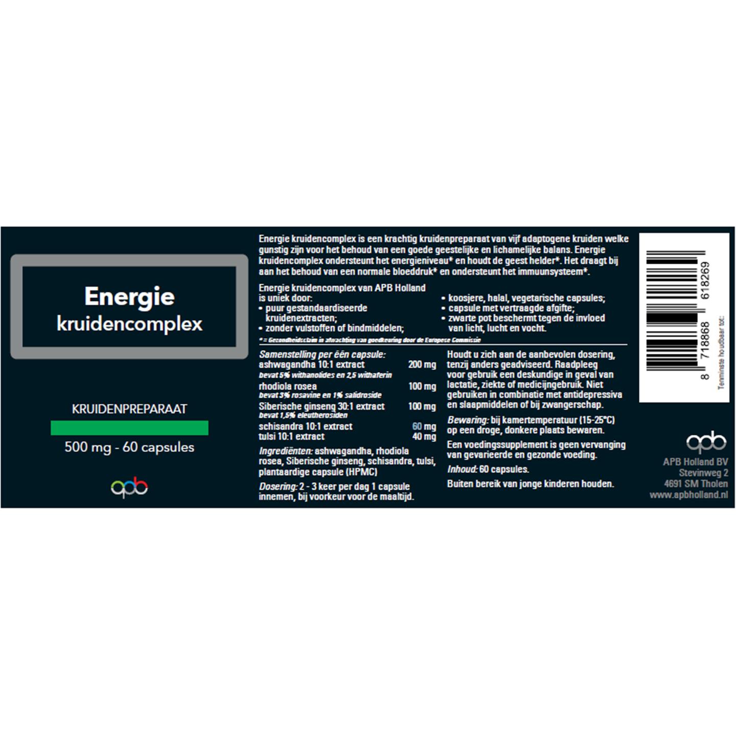 Ashwagandha extract, Rhodiola rosea, Siberische ginseng extract, Schisandra extract, Tulsi extract, Plantaardige capsule (Hydroxypropylmethylcellulose).