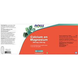 NOW Calcium 500 mg en Magnesium 250 mg 250 tab