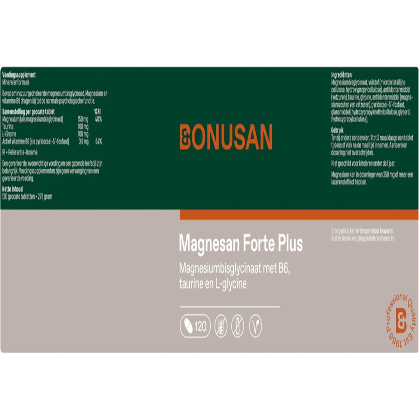Magnesiumbisglycinaat, Vulstof (Microkristallijne cellulose, Hydroxypropylcellulose), Antiklontermiddel (Vetzuren), Taurine, Glycine, Antiklontermiddel (Magnesiumzouten van vetzuren), Pyridoxaal-5-fosfaat, Glansmiddel (Hydroxypropylmethylcellulose, Glycerol, Hydroxypropylcellulose).