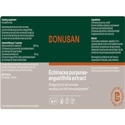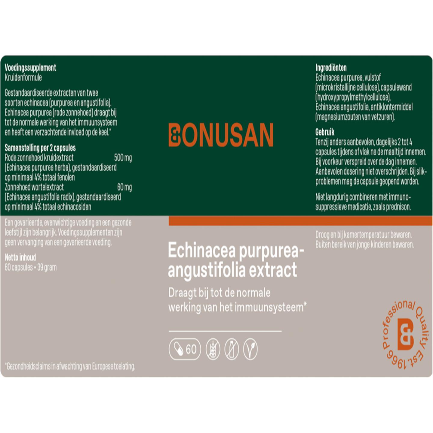 Echinacea purpurea, Vulstof (Microkristallijne cellulose), Capsulewand (Hydroxypropylmethylcellulose), Echinacea angustifolia, Antiklontermiddel (Magnesiumzouten van vetzuren).